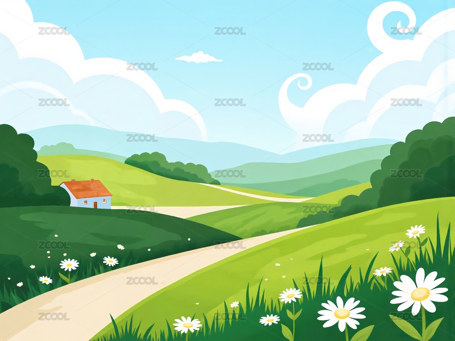 设计,背景,可爱,插画,自然,卡通,绿色,草地,天空,艺术