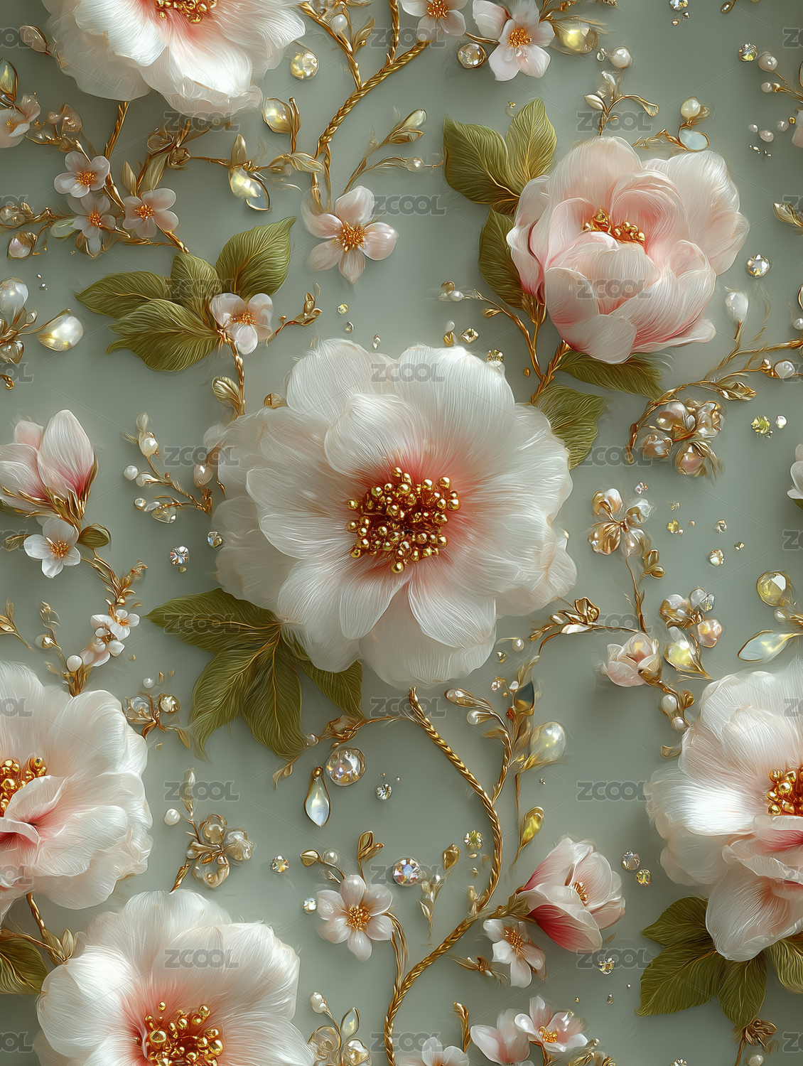 3D立体花卉印花背景