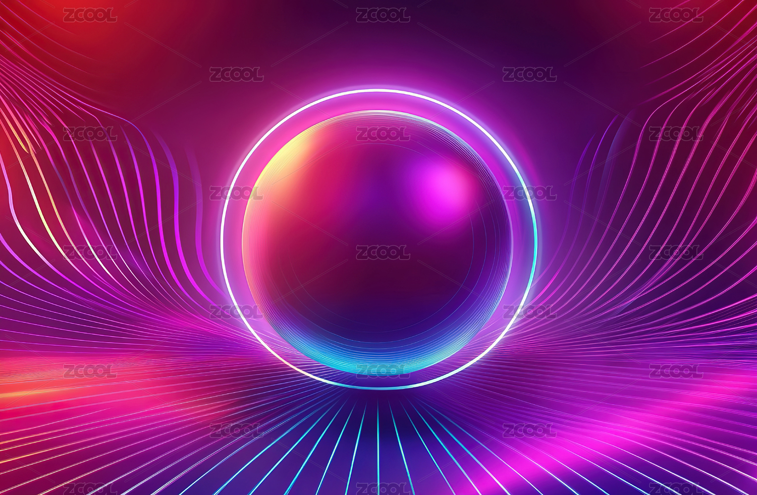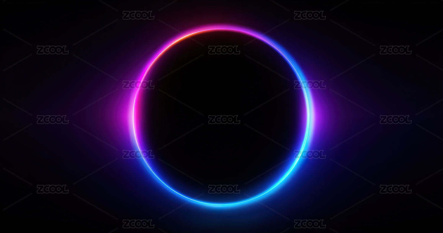 数码蓝粉圆形霓虹灯抽象图形海报网页背景
