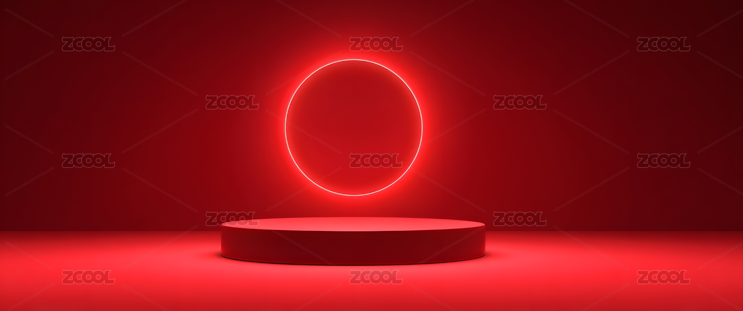 红色,霓虹,圆环,平台,现代,艺术,装置,光影,线条,简洁