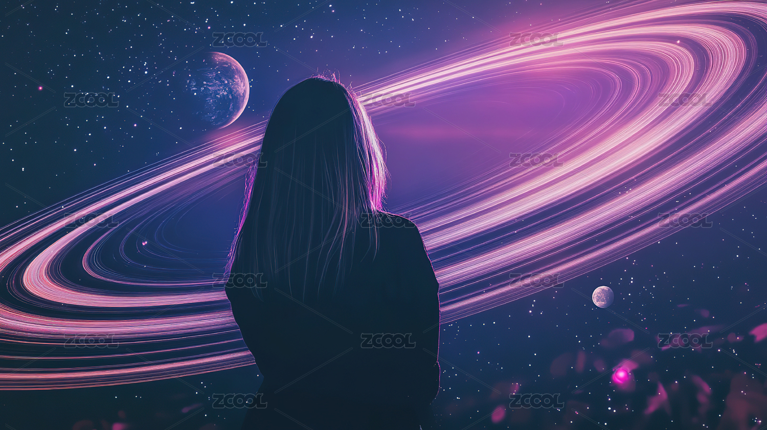 宇宙星空与人物剪影