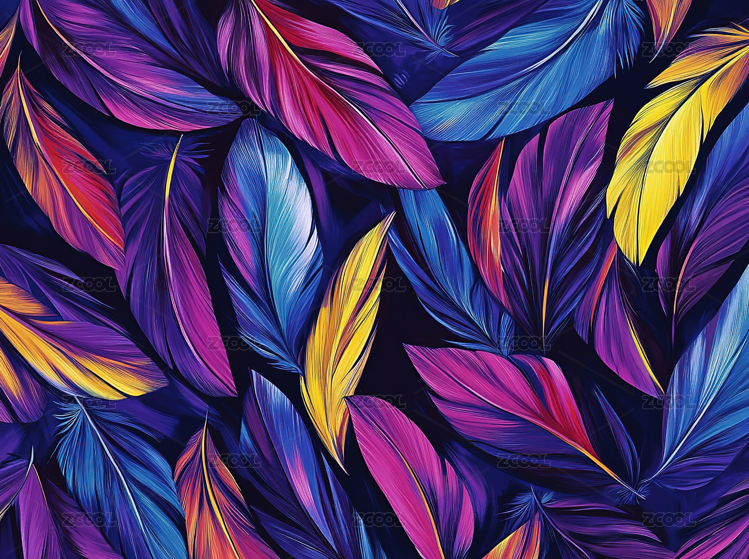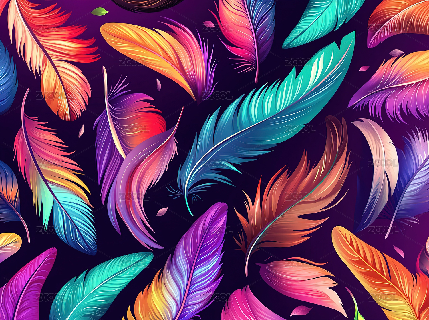 数码白底彩色羽毛印花图案装饰抽象海报背景