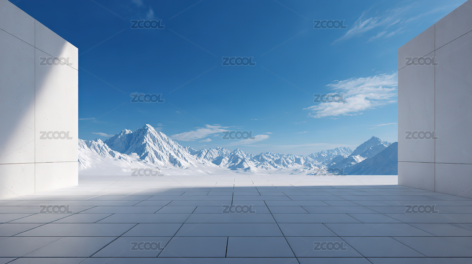 建筑,窗户,雪山,蓝天,白云,室内,地板,瓷砖,景观,自然