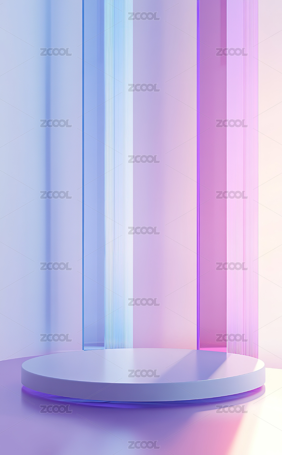 霓虹灯,圆台,光线,垂直,色彩,渐变,未来感,科技感,明亮,光滑