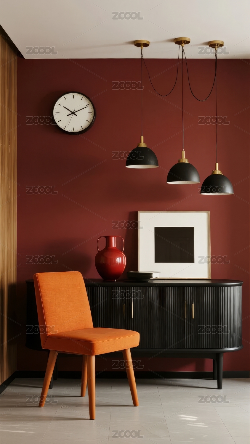 橙色,背景,白色,柜子,花瓶,装饰,现代,简约,室内,设计
