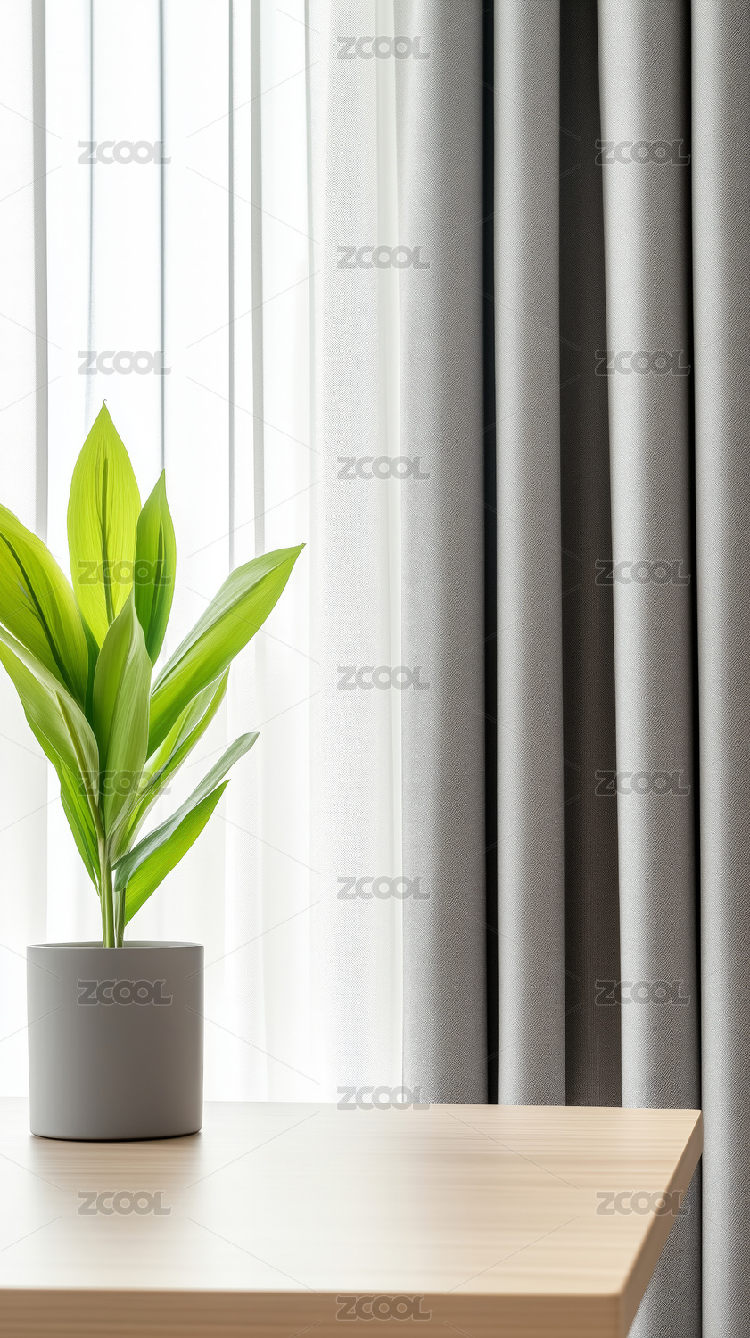 绿植,圆桌,窗帘,室内,简约,白色,自然,装饰,明亮,现代