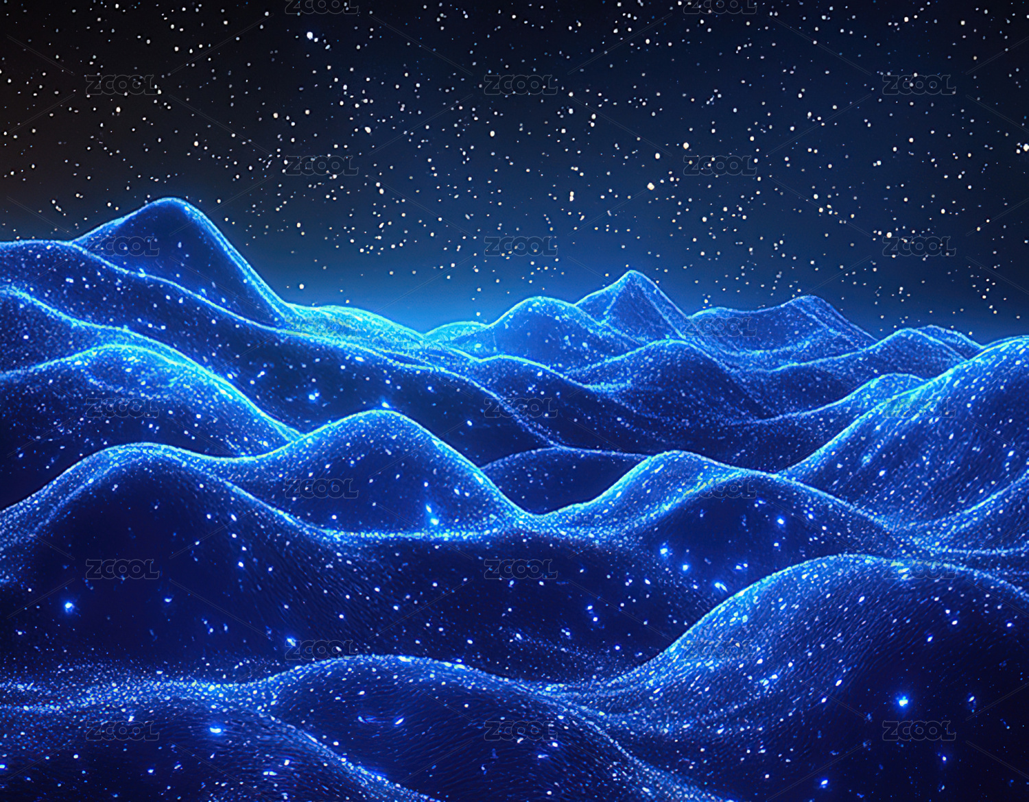 梦幻星空下的蓝色山峦景象