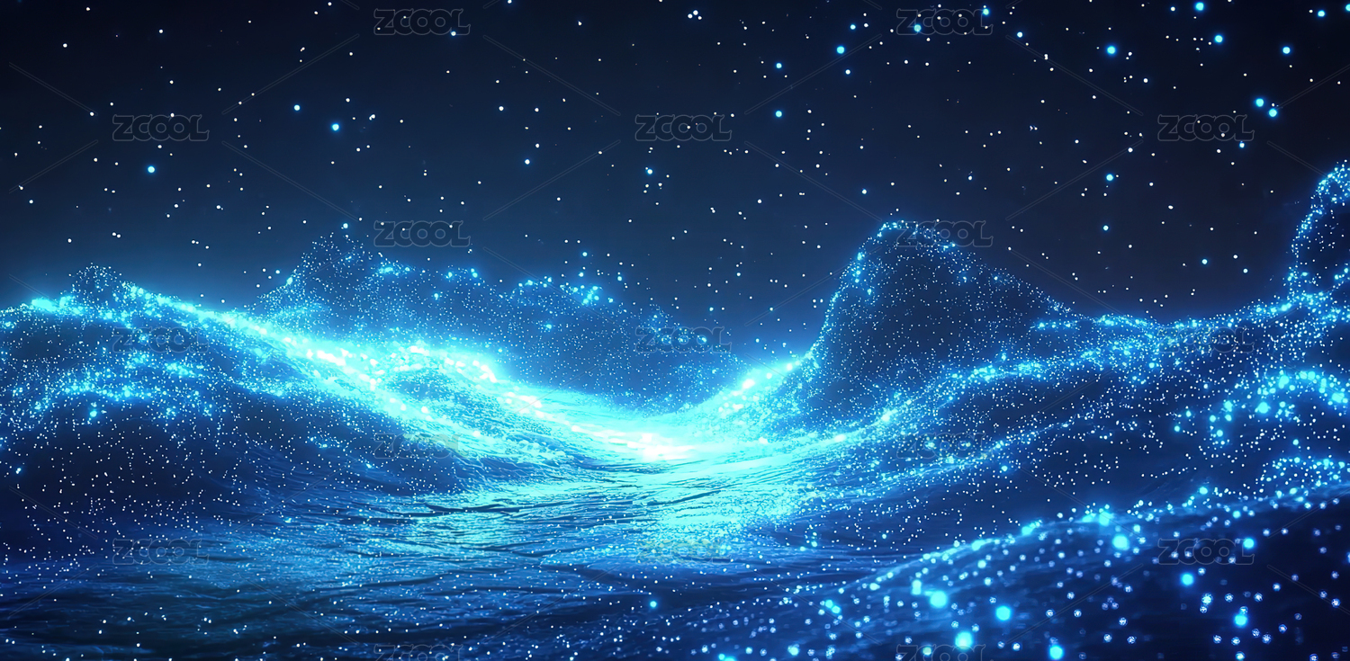 星空下的海面,蓝色光影朦胧