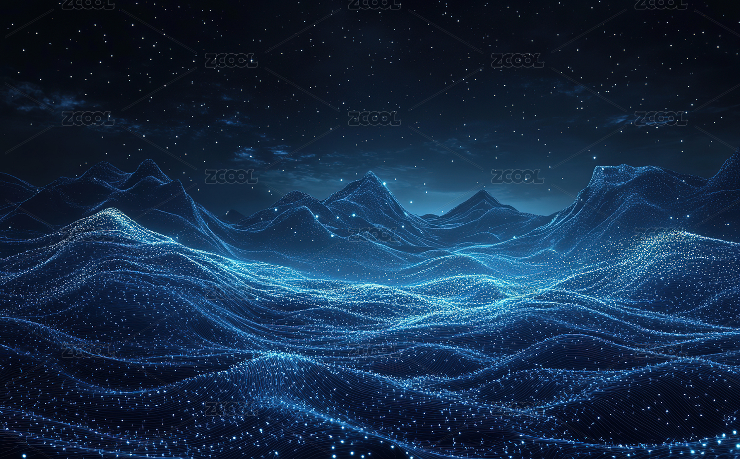 星空下的蓝色科技线条山峰