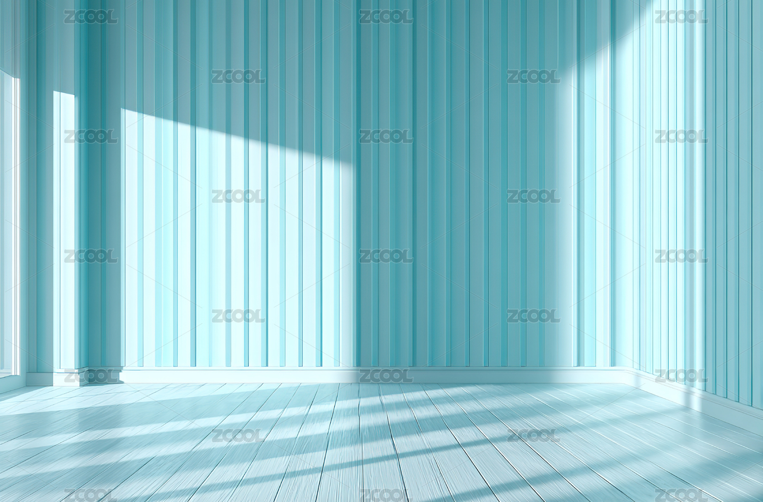 浅蓝条纹墙的空旷室内空间
