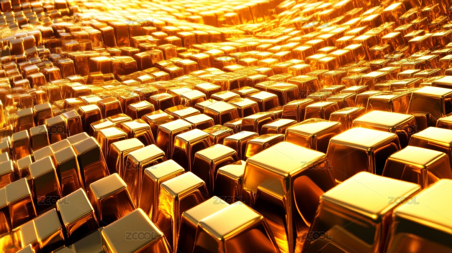 主视觉,金色,方块,财富,存储,场景,金属,质感,堆积,贵重