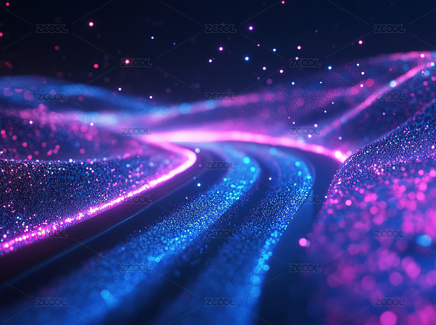 未来科幻蓝色科技感粒子点线构成的数字山脉