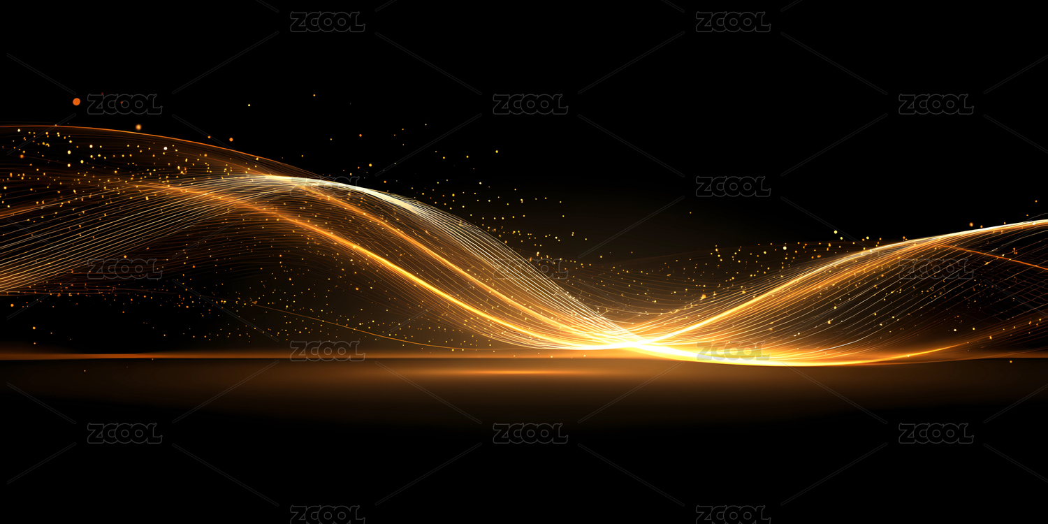 金色光带在黑暗中流动闪耀的抽象艺术背景
