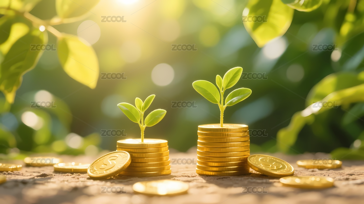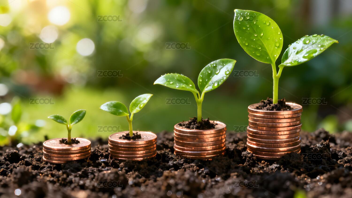 背景,硬币,模糊,堆叠,绿色,自然,植物,小芽,水面,经济