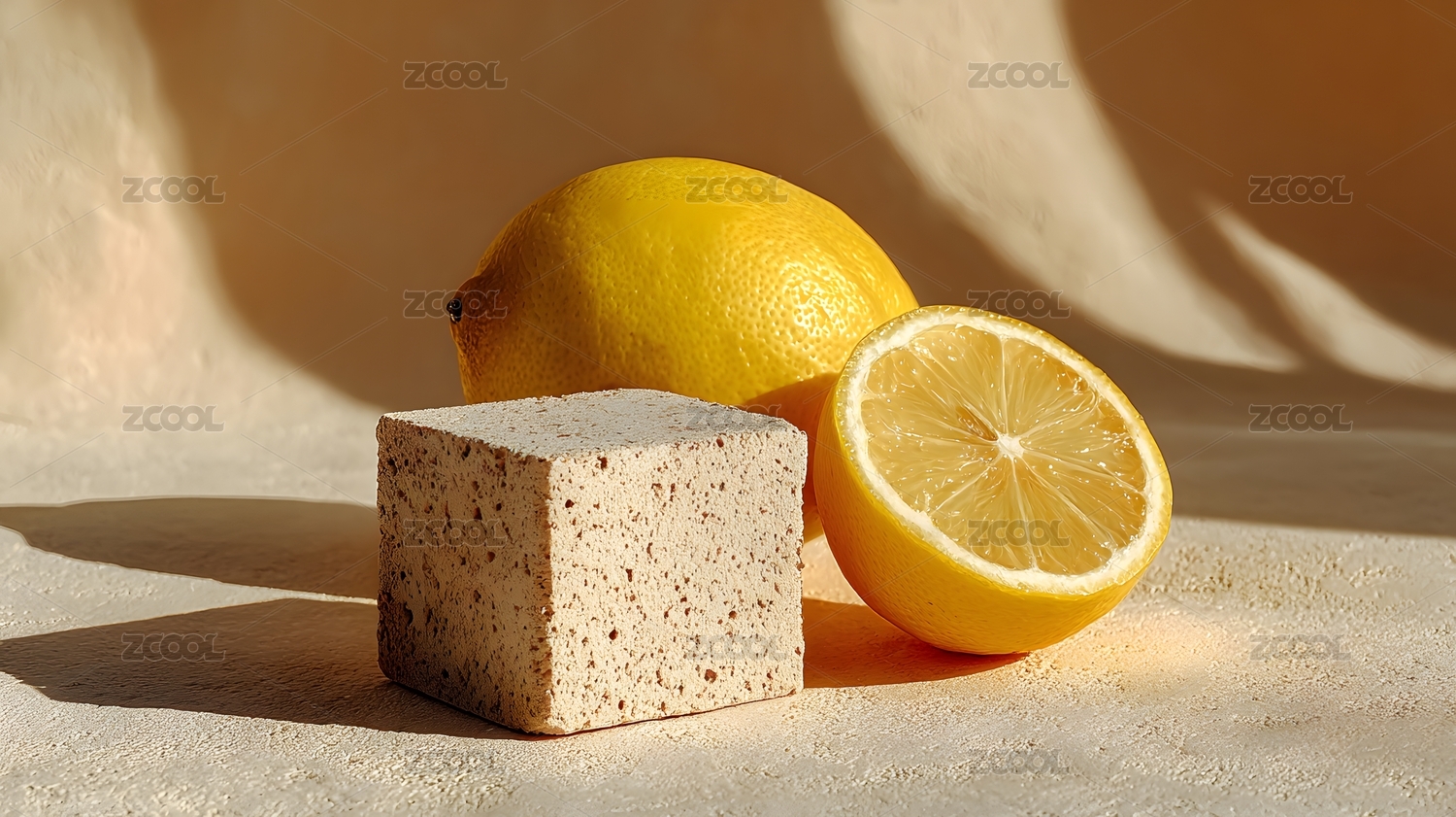 主视觉,场景,柠檬,木块,简约,静物,水果,切片,木质,浅色