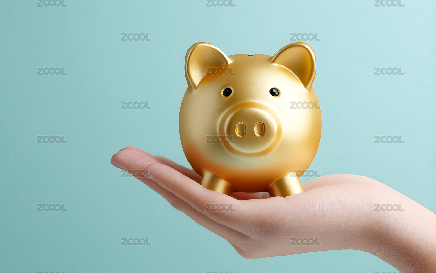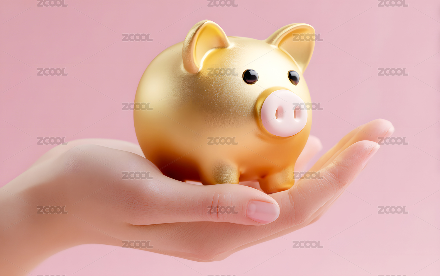 手拿着保护伞和小猪存钱罐存钱储蓄投资理财概念