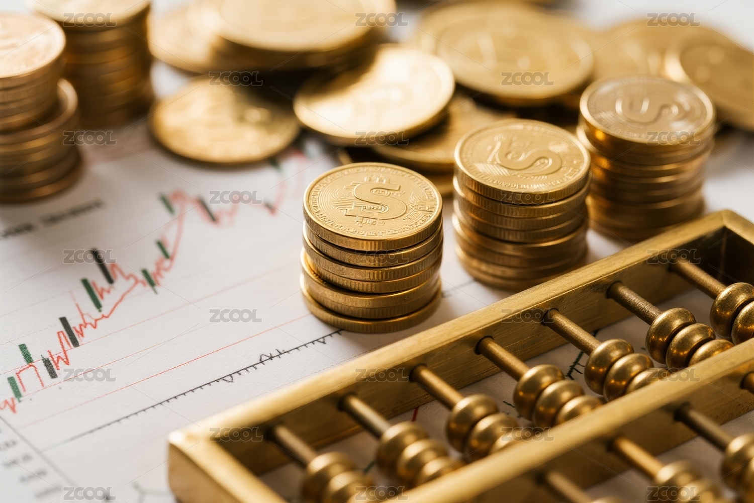 k线图算盘计算器和金币