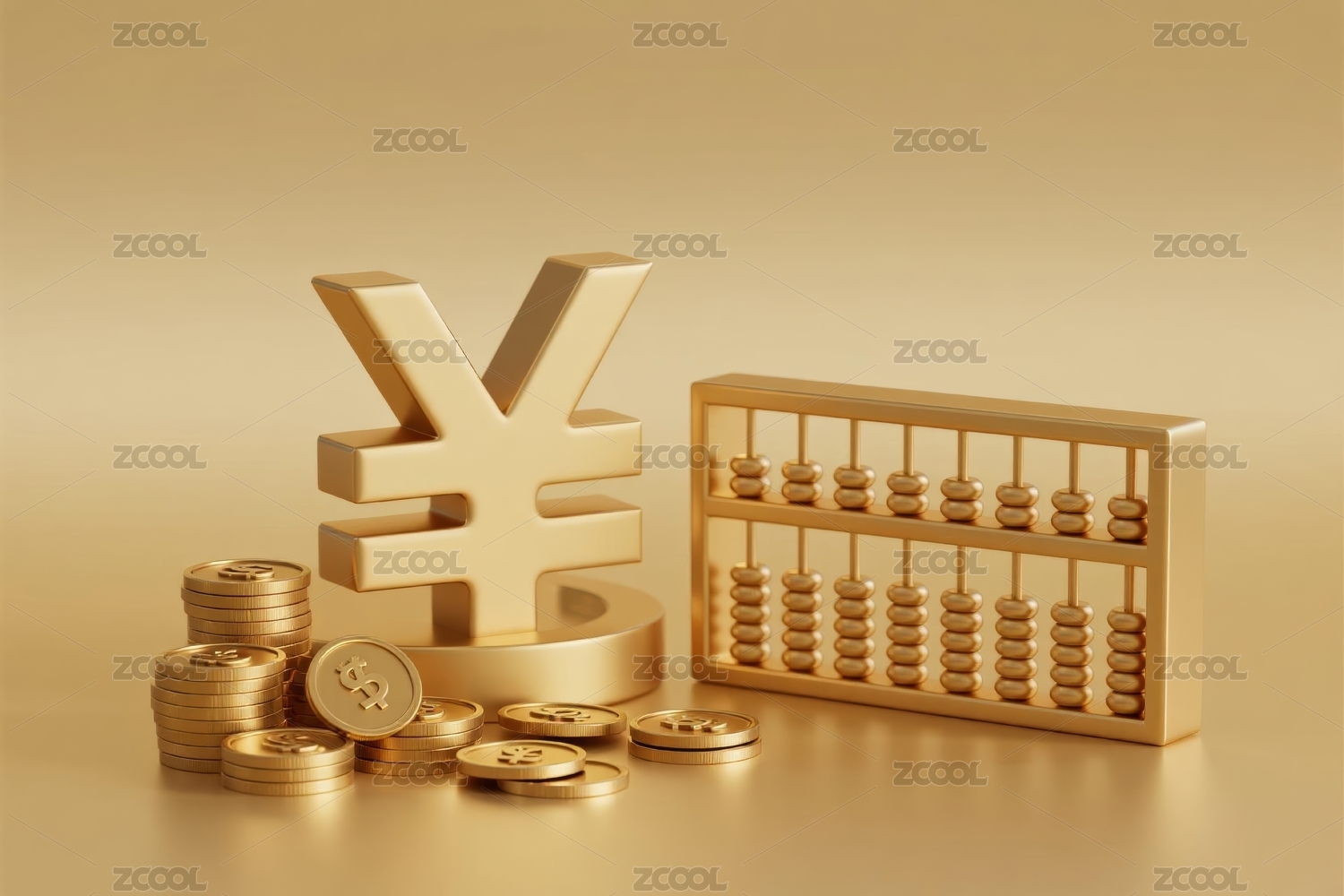 主视觉,金,算盘,财富,金融,展示,场景,金条,金色,理财