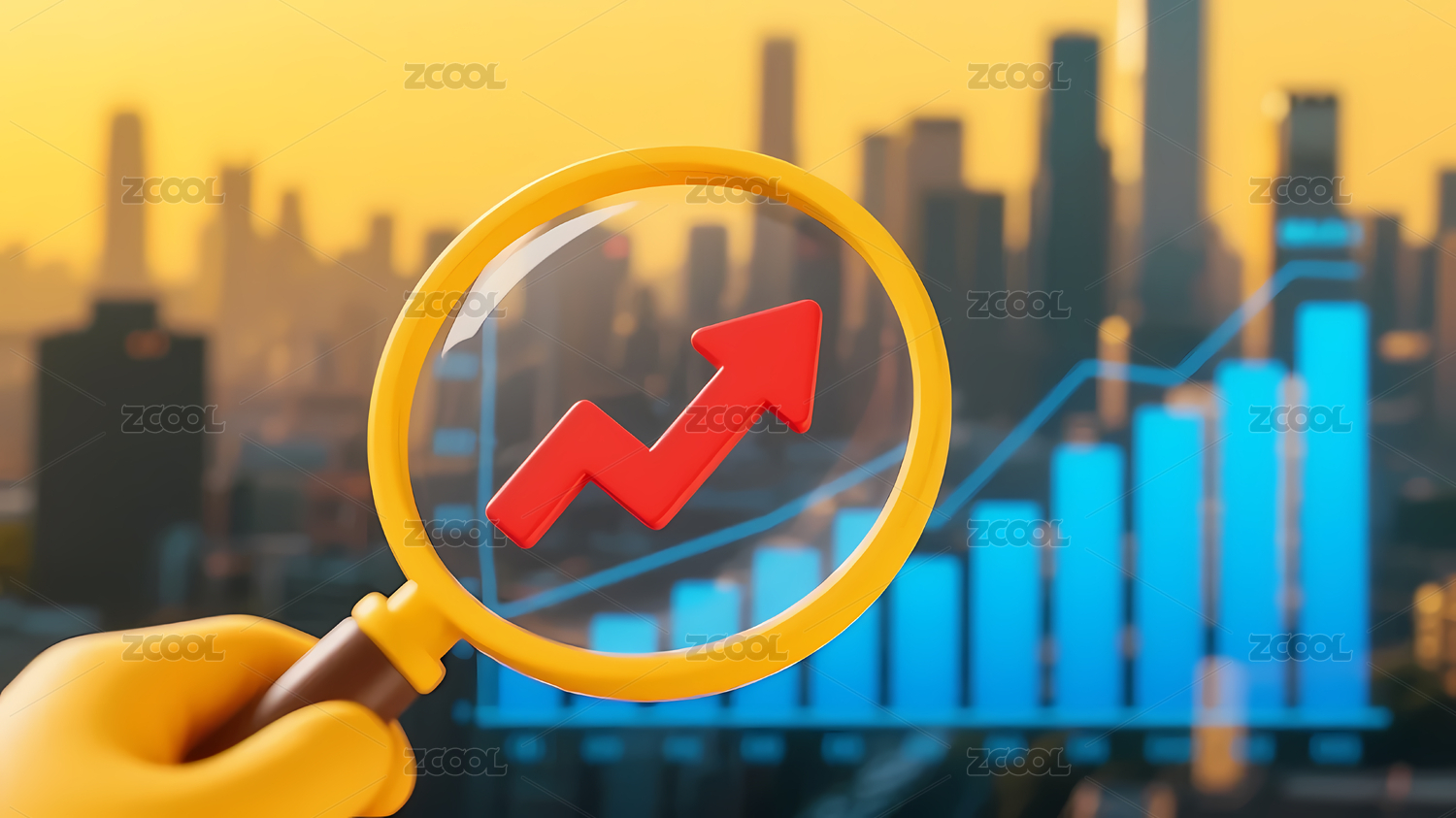 城市,背景,蓝色,放大镜,红色,图表,天际线,手,黄色,箭头