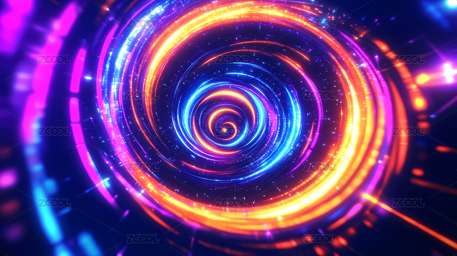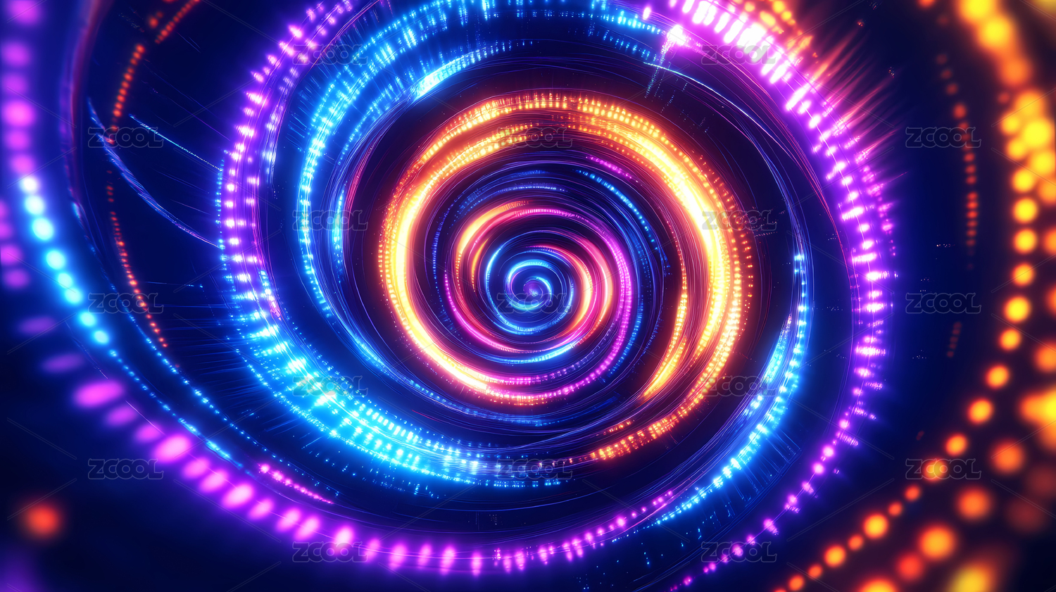 科技感发光光圈色彩斑斓螺旋状线圈概念插图