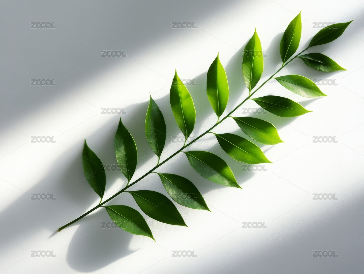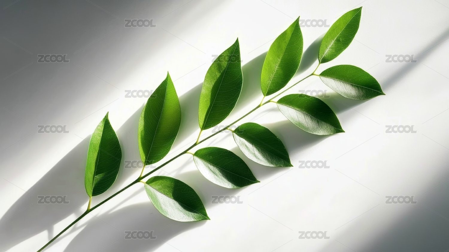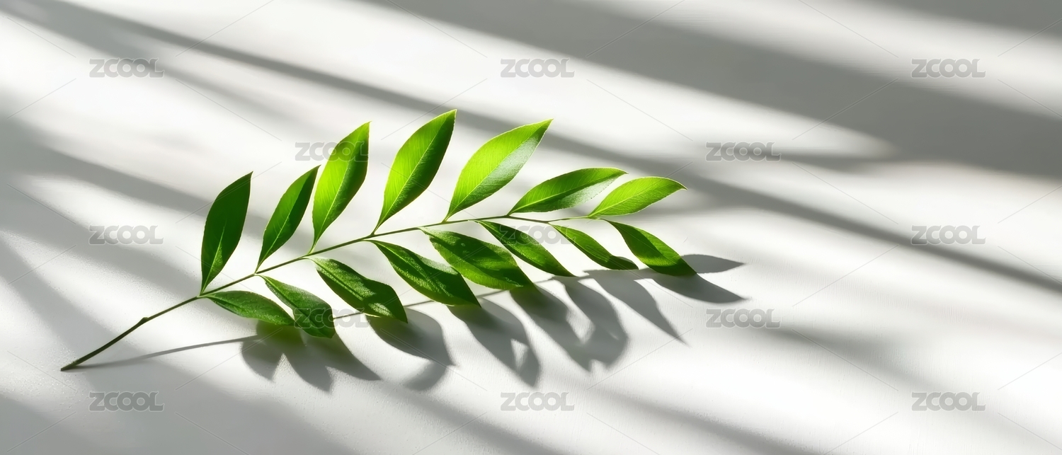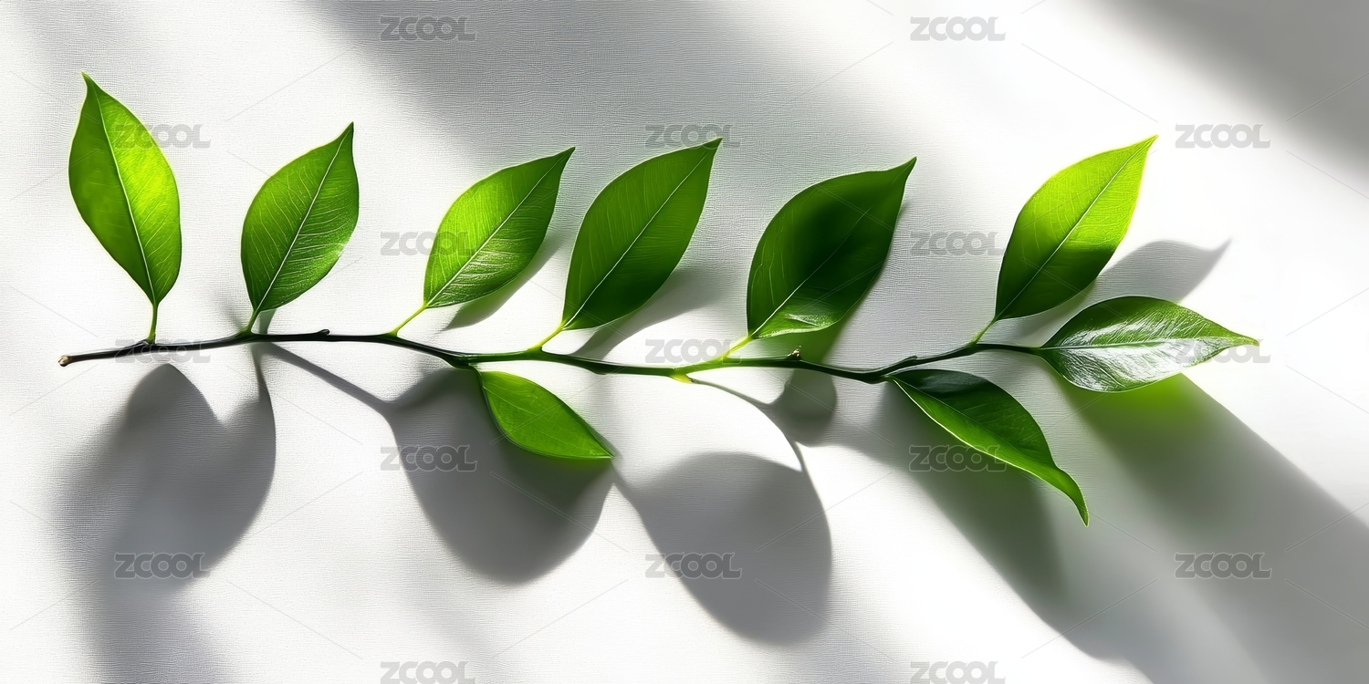 绿枝叶简约静物场景