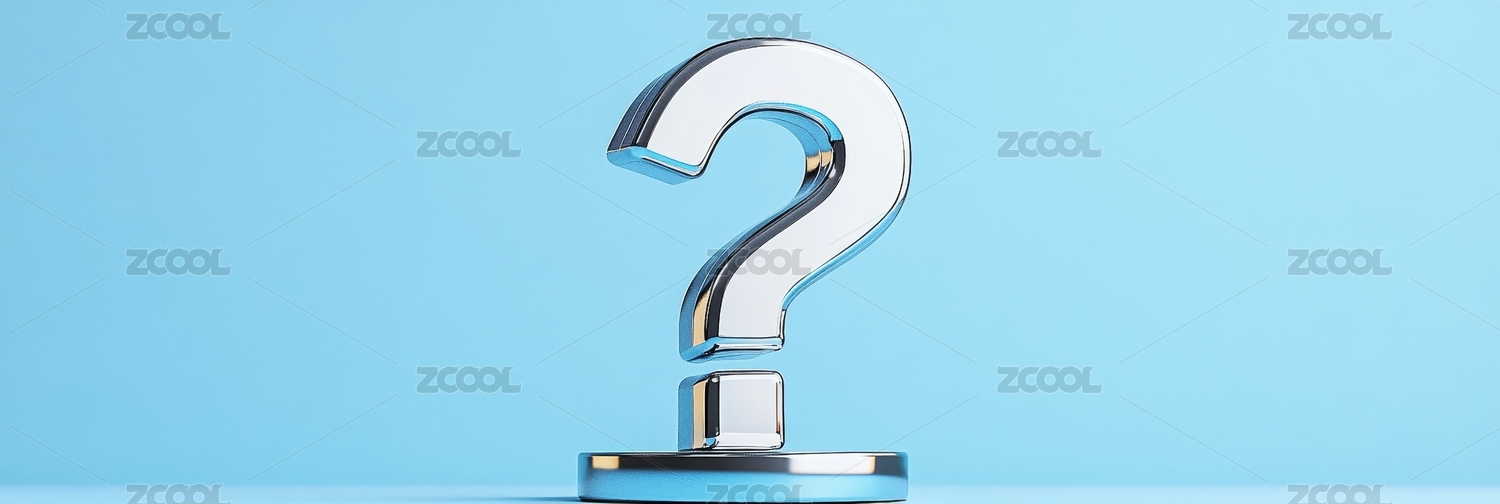 蓝色背景下的3D立体问号符号图标