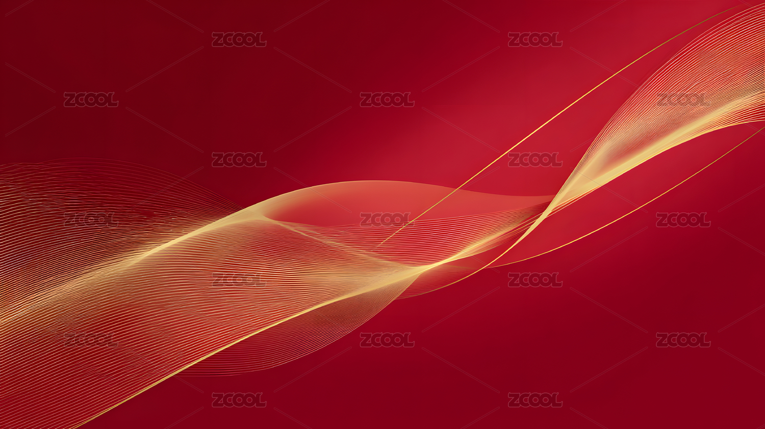 红色背景金色波浪线条图案