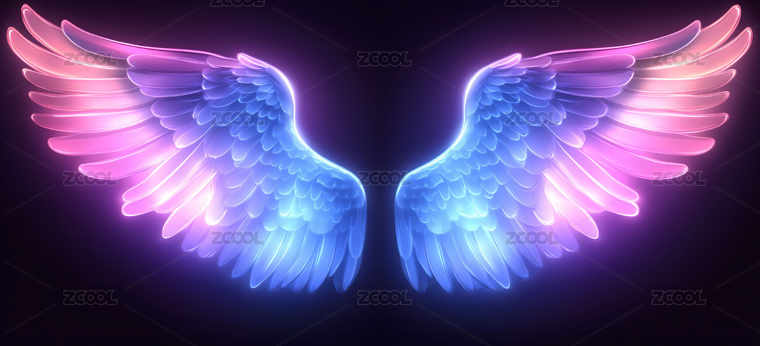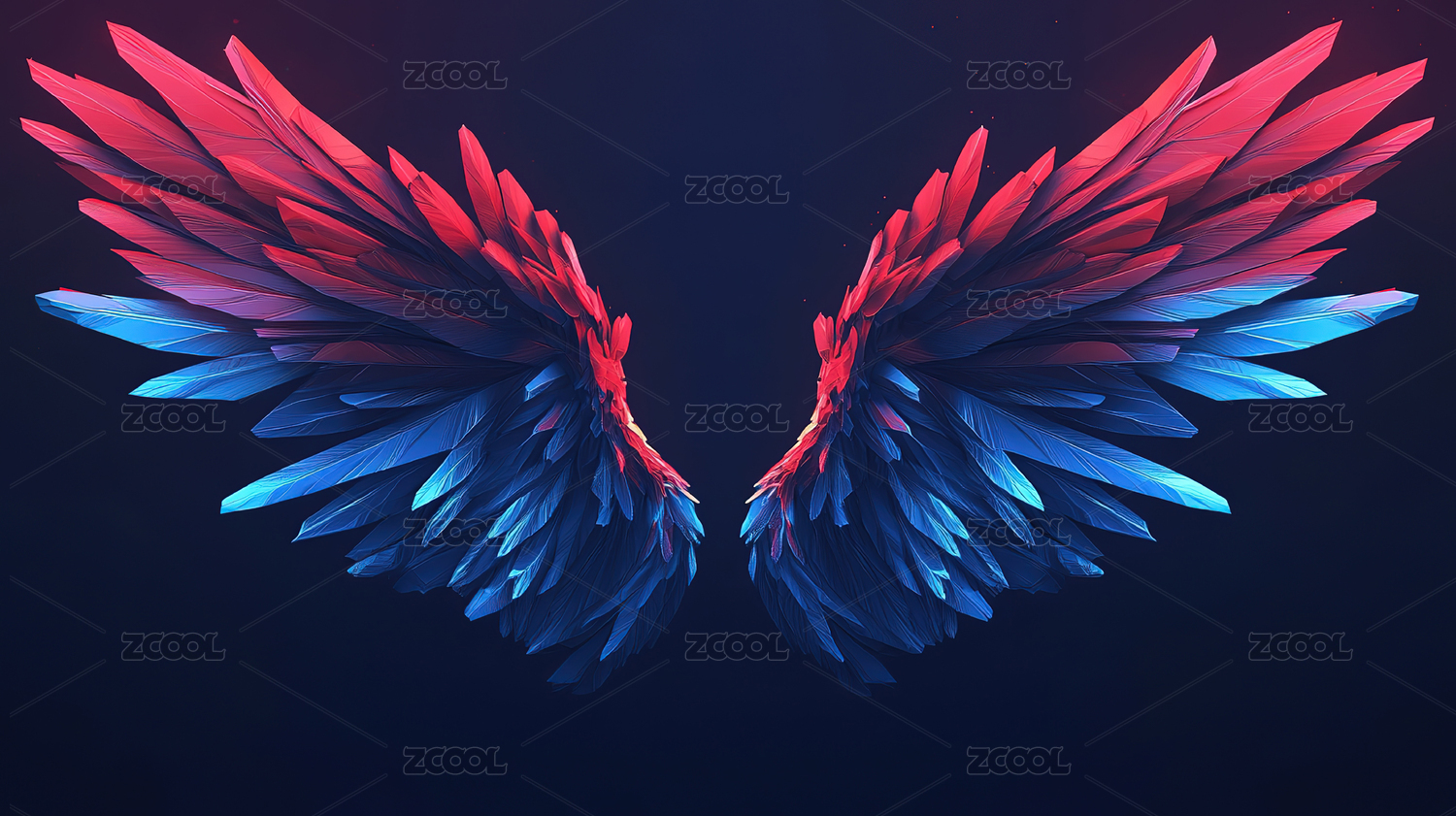 翅膀,星空,渐变,蓝色,插画,羽毛,梦幻,闪耀,艺术,奇幻