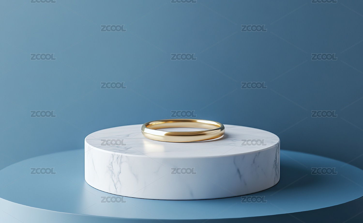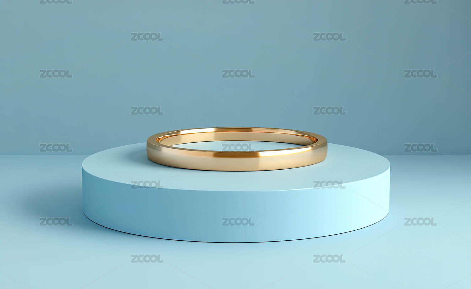 金色戒指置于粉色展台上