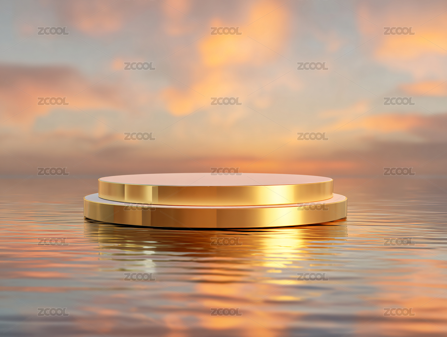 唯美,背景,倒影,晚霞,海面,落日,场景,纯净,金台,柔光