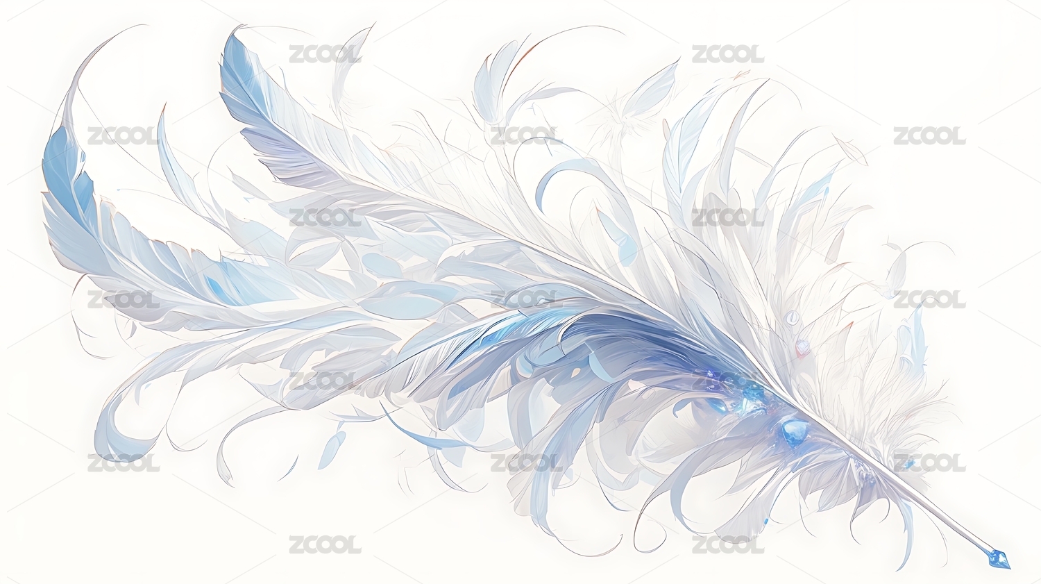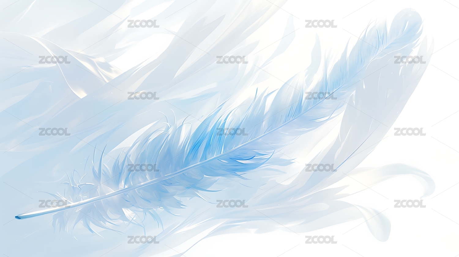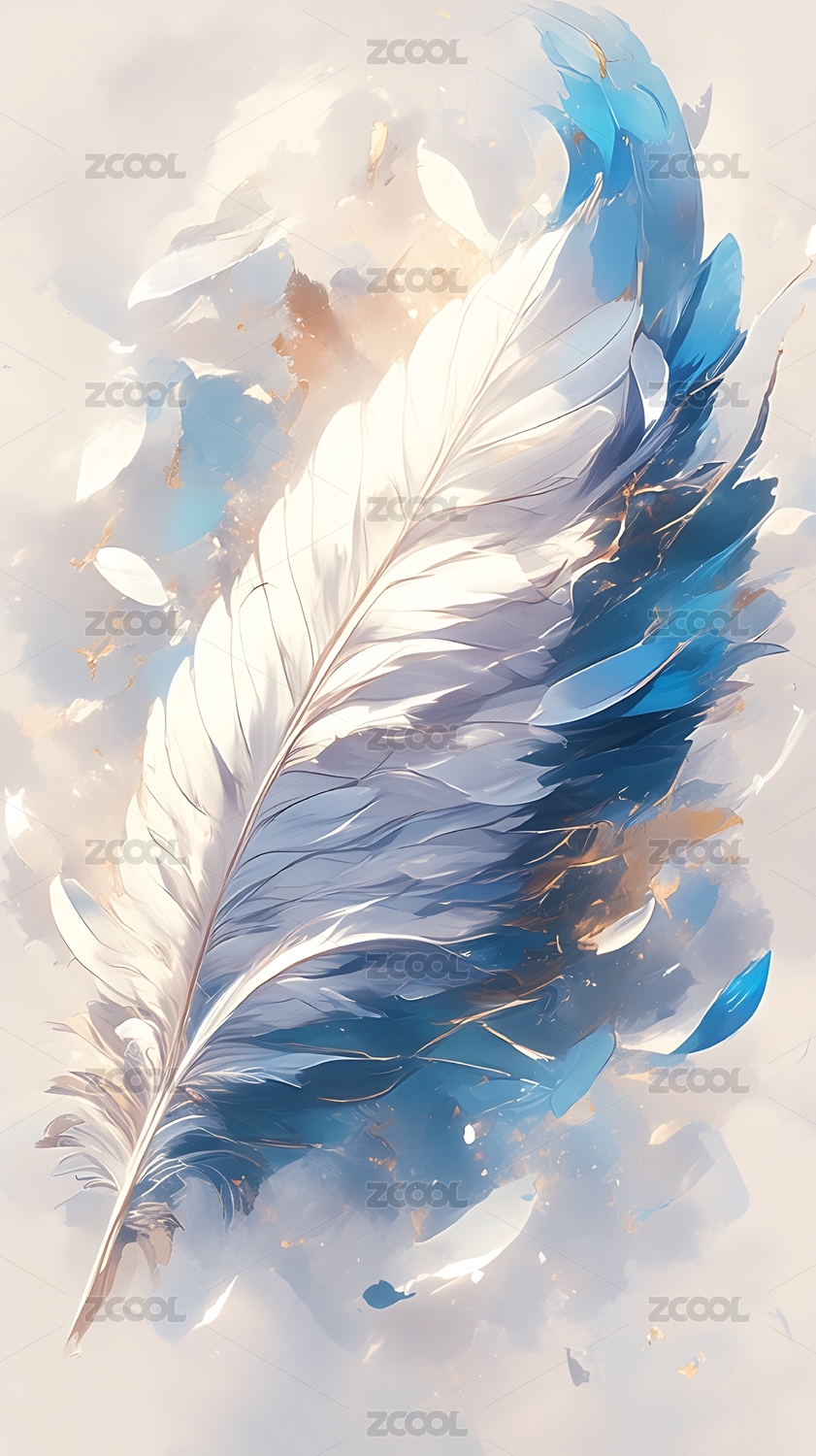 渐变蓝羽,光效,梦幻,清新,艺术,插画,灵动,色彩,羽毛,唯美