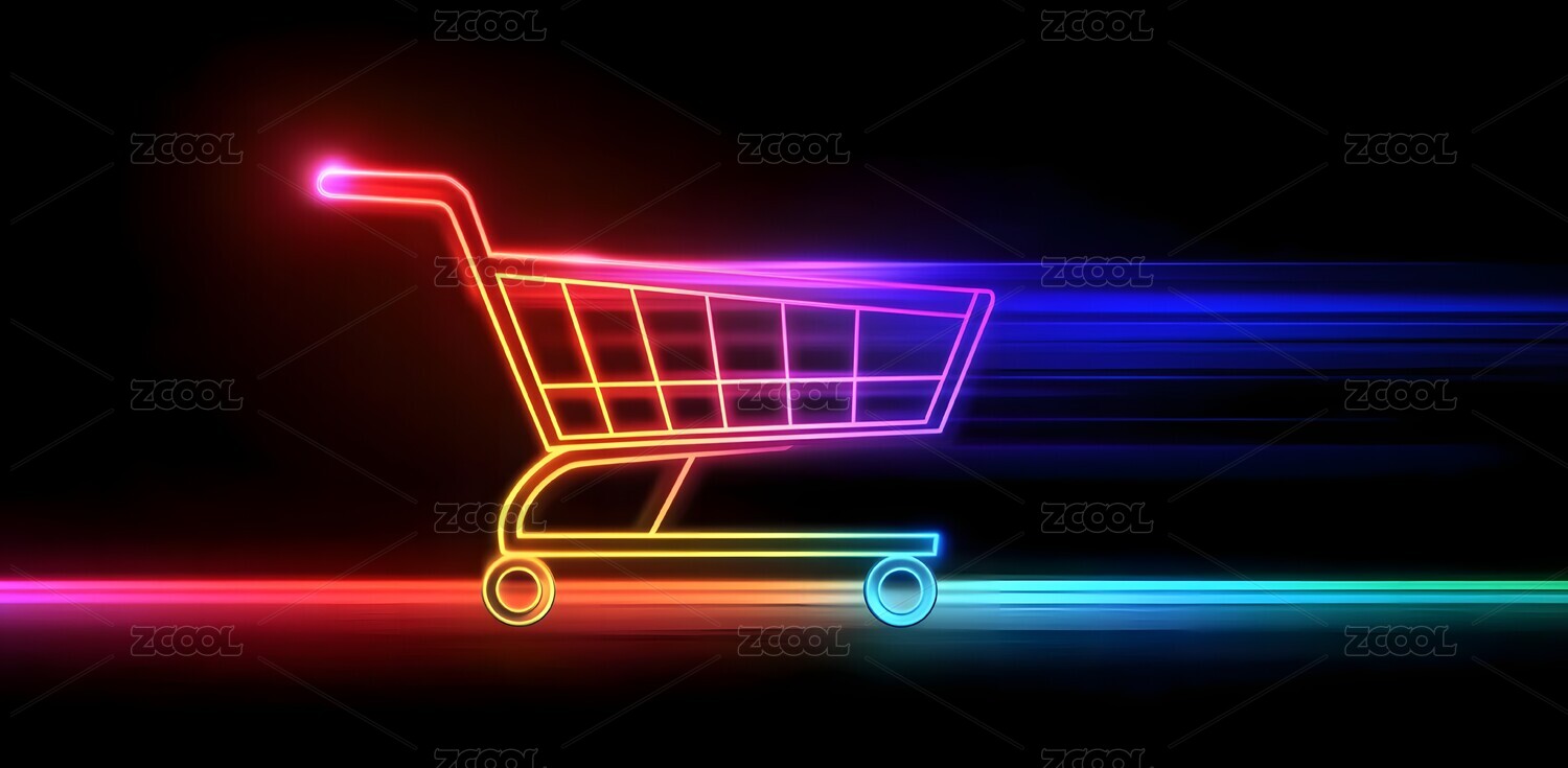 霓虹灯购物车的炫酷背景