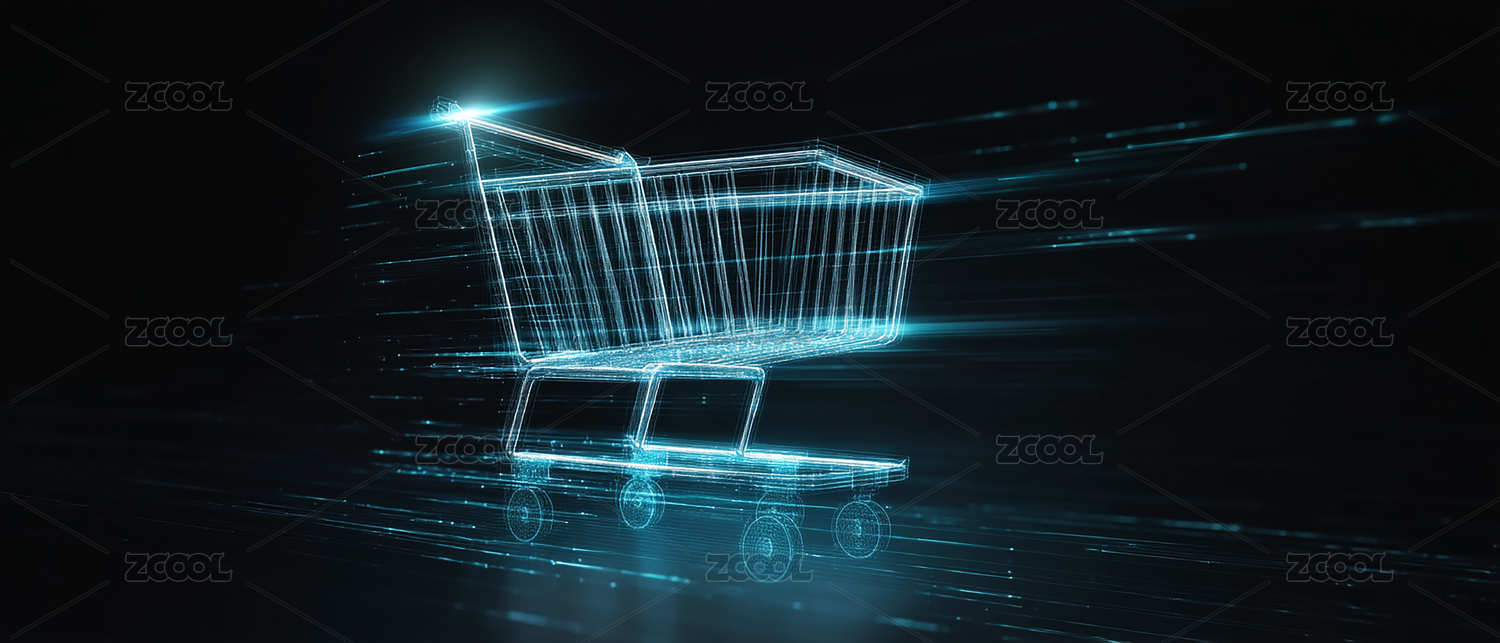 发光购物车的科技背景图