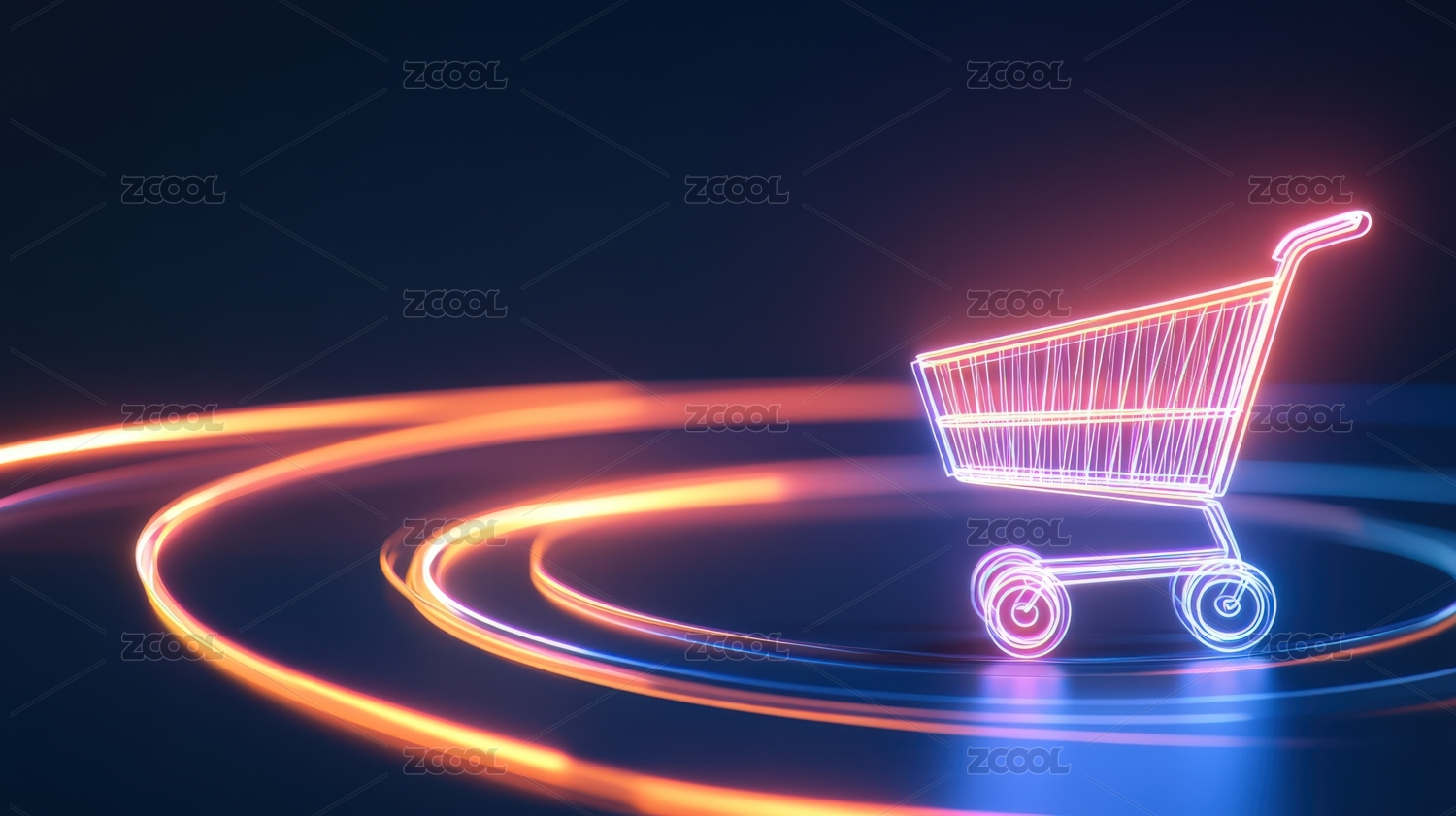 霓虹灯购物车未来科技感