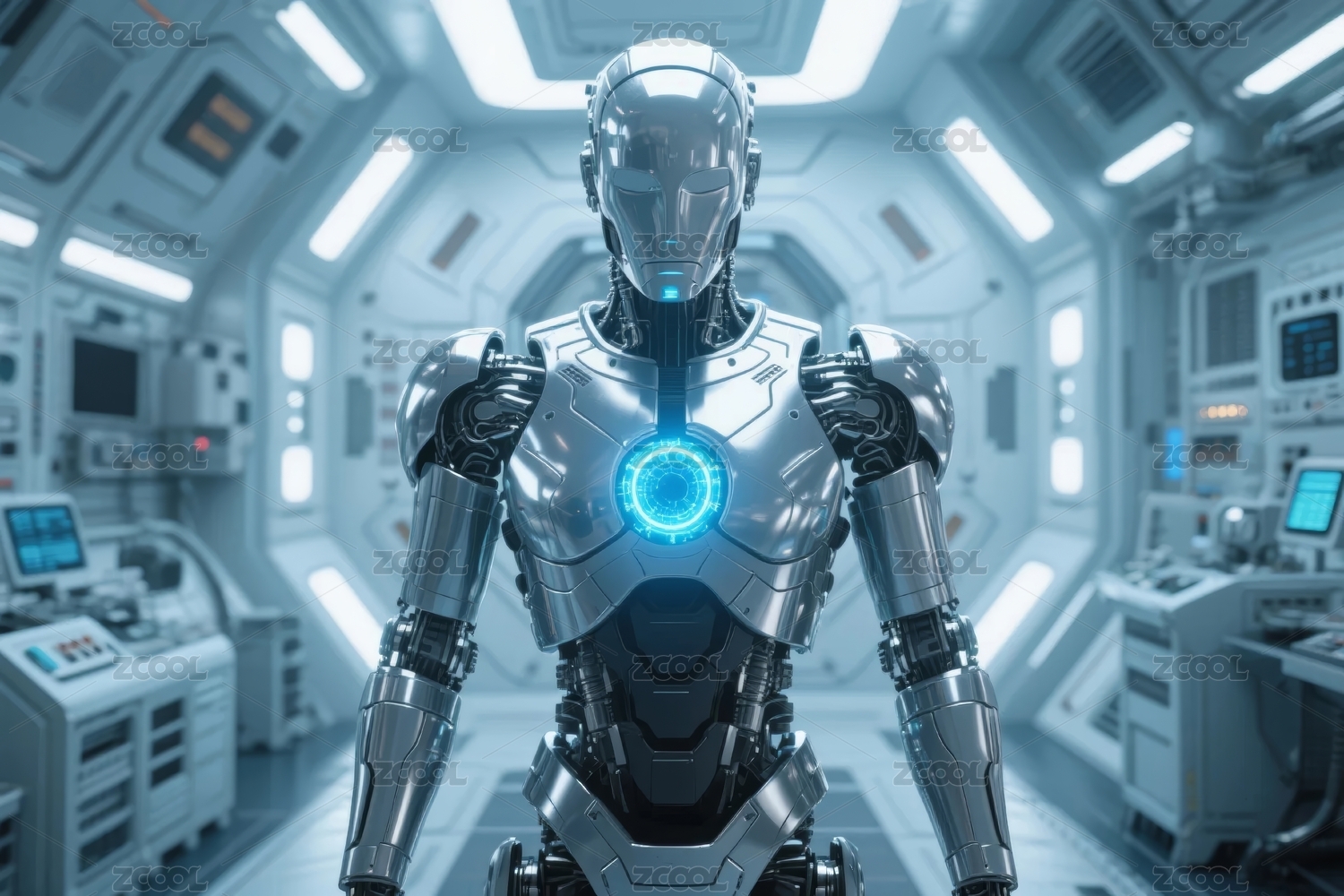 未来科技感机器人站立走廊