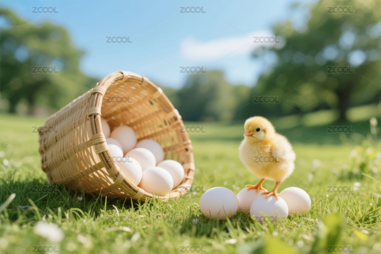 主视觉,场景,田园,鸡雏,生态,篮子,鸡蛋,小鸡,草地,自然