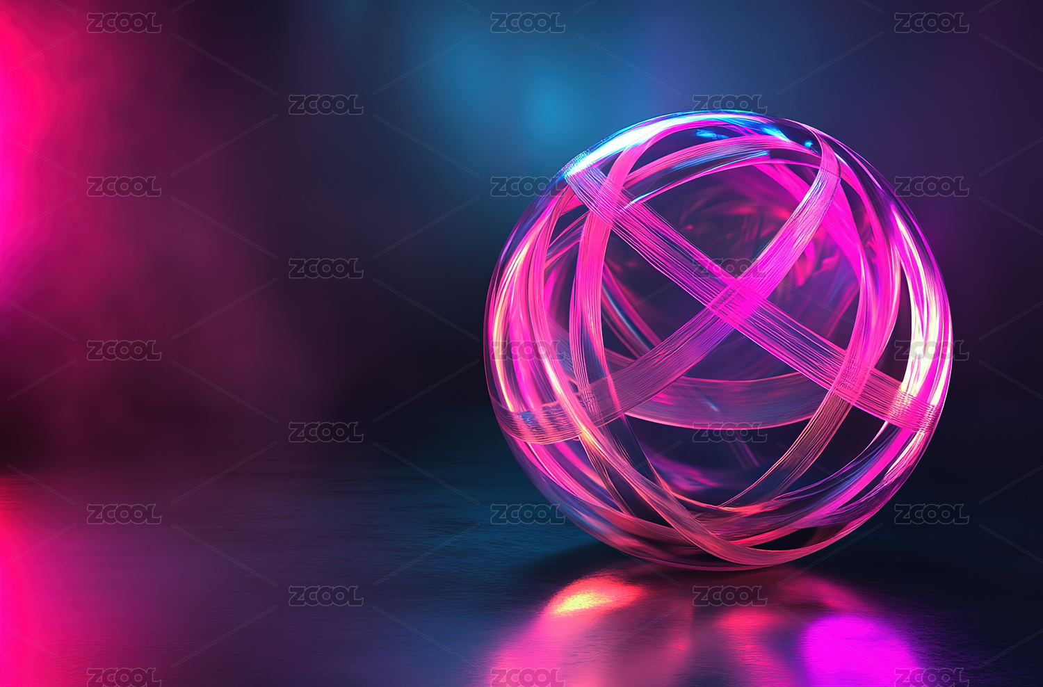 蓝色,抽象,霓虹灯,艺术,科技感,光线,玻璃球,未来,球体,粉色
