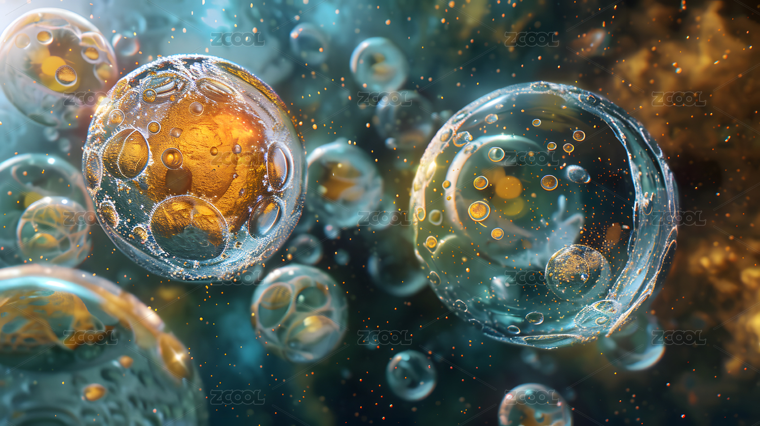清新,透明,气泡,背景,湿润,环境,微观,绿色,细胞,分子