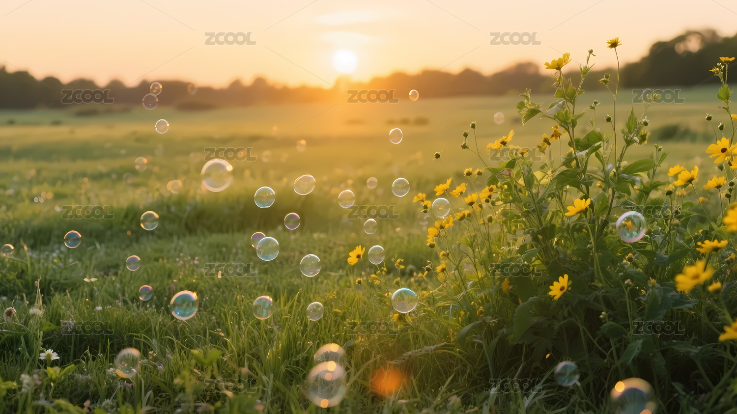 夕阳草地花朵泡泡