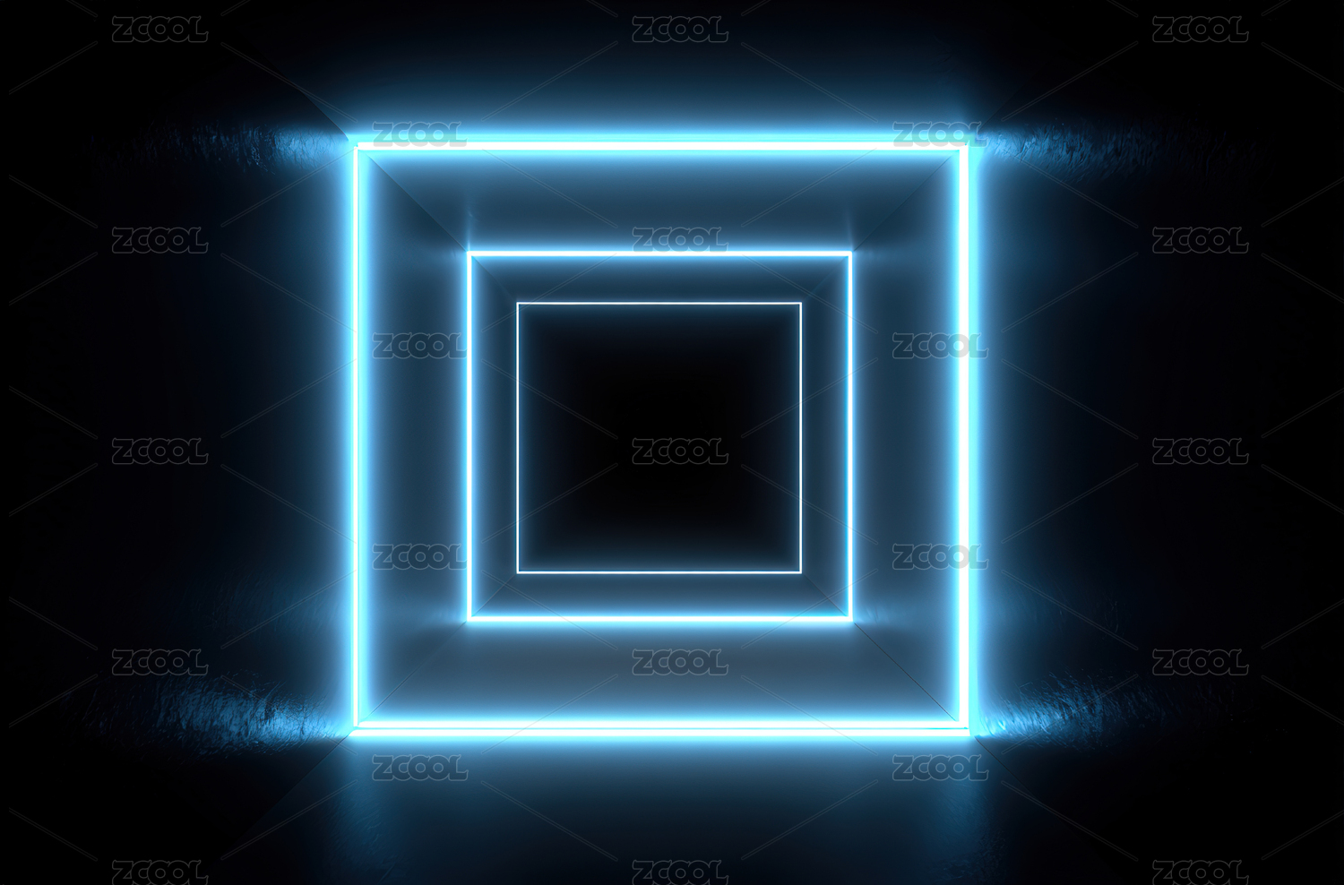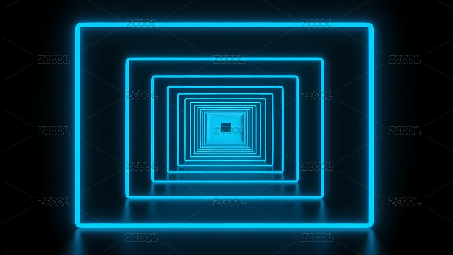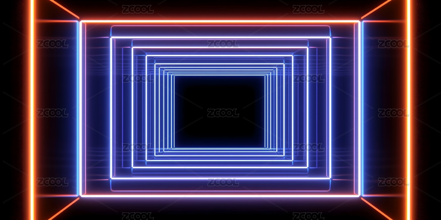 蓝色霓虹灯方形隧道