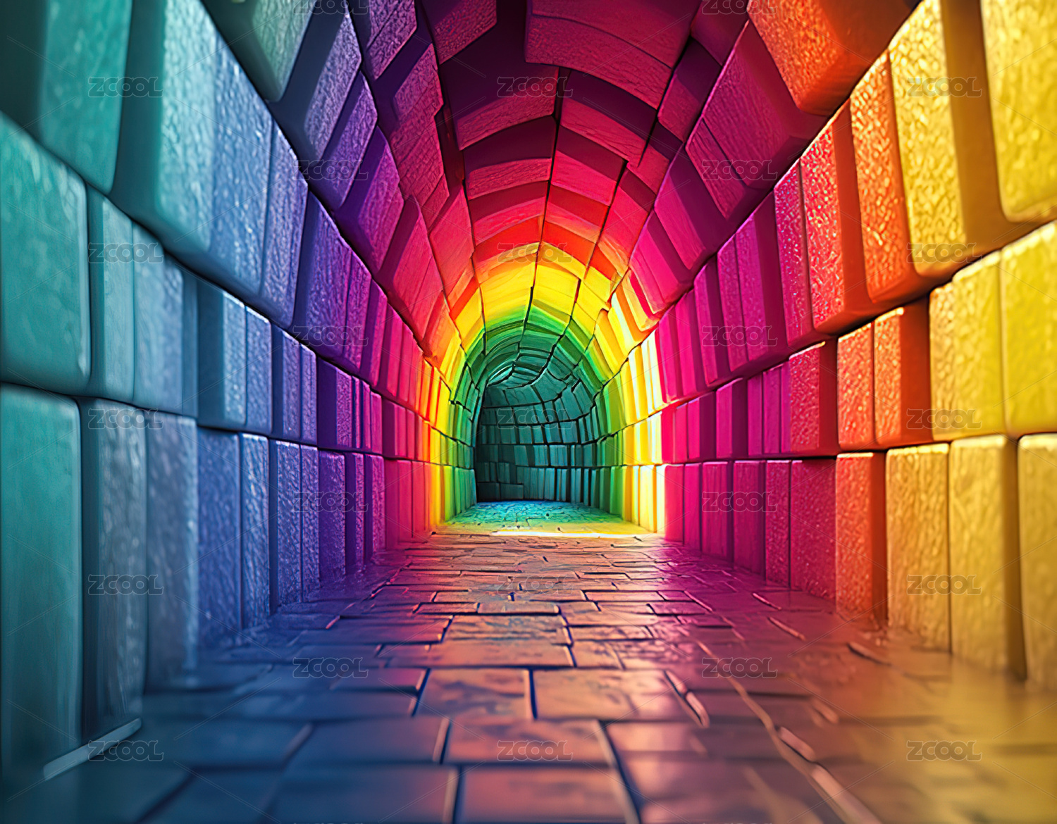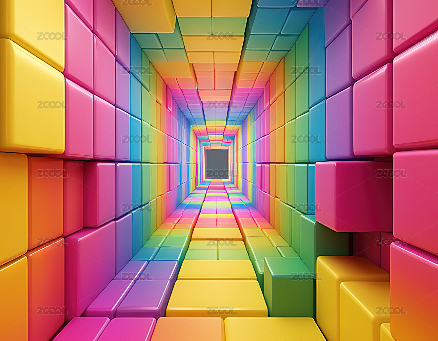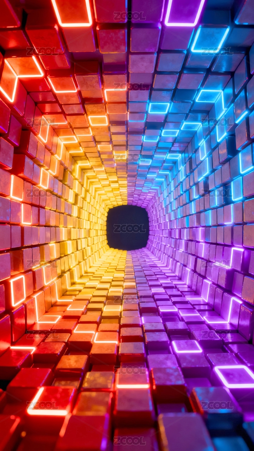彩色立方体隧道与光点