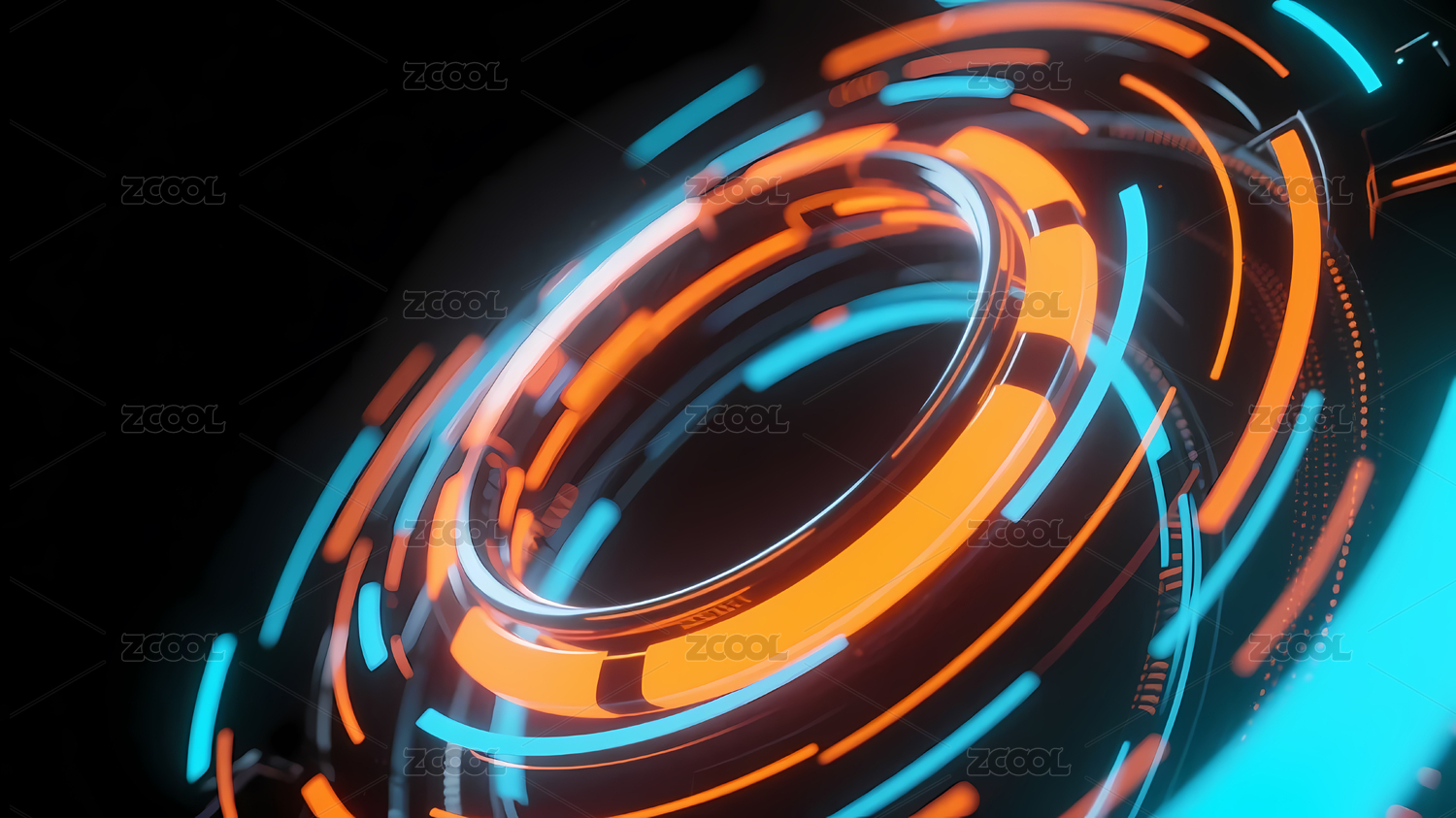 蓝橙圆形光圈未来