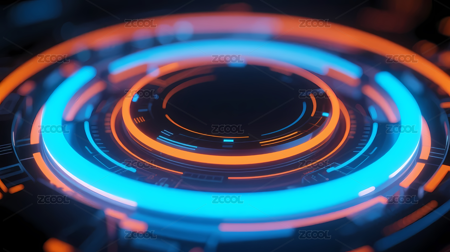 橙蓝霓虹环形图案背景