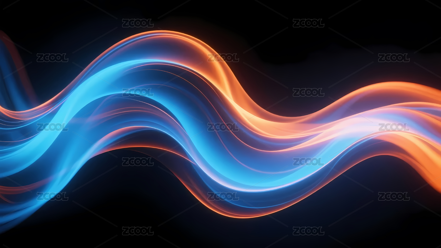 背景,蓝色,橙色,黑色,光带,蜿蜒,曲线,交织,动态,视觉