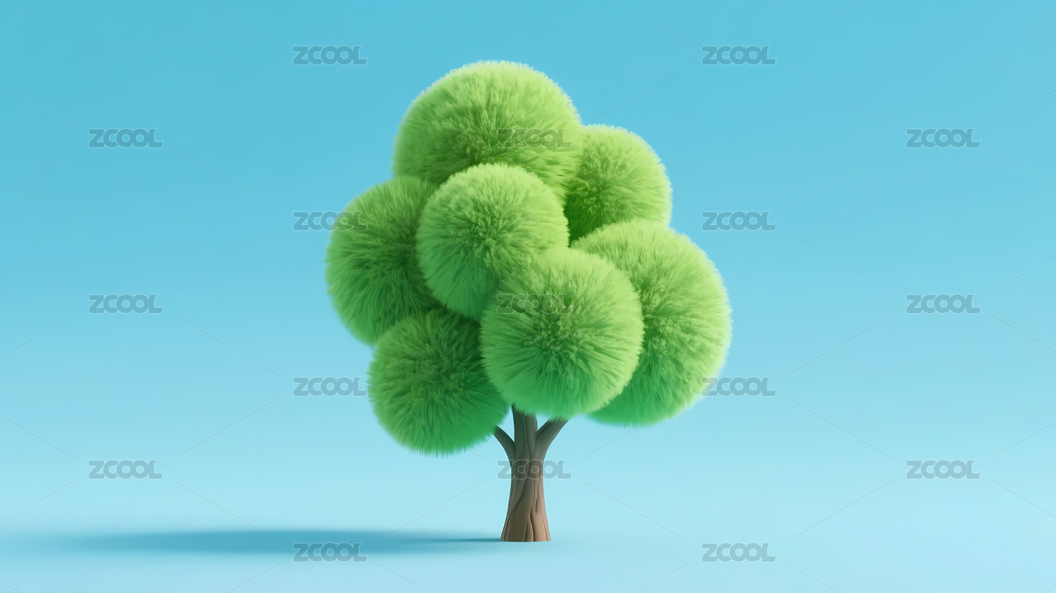 绿色毛绒树与蓝色地面