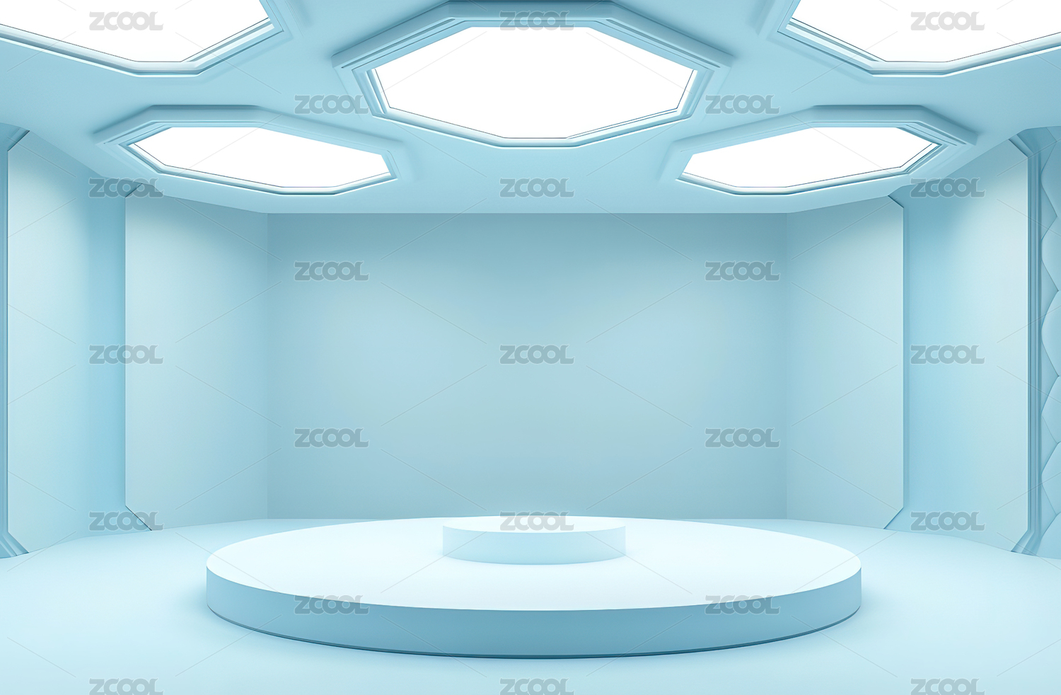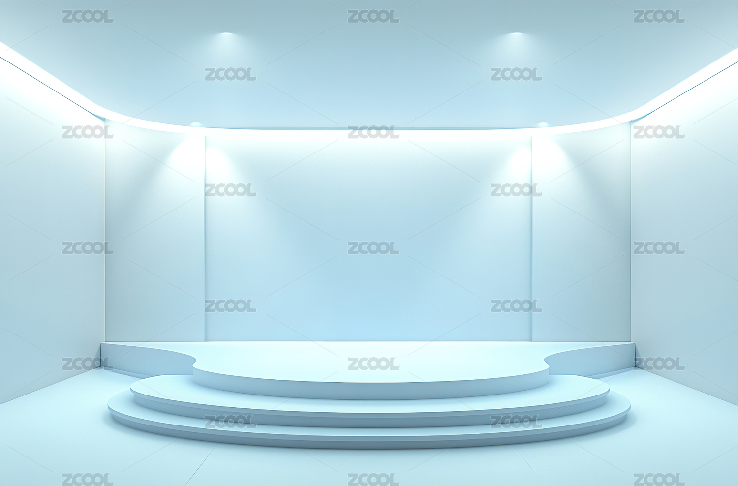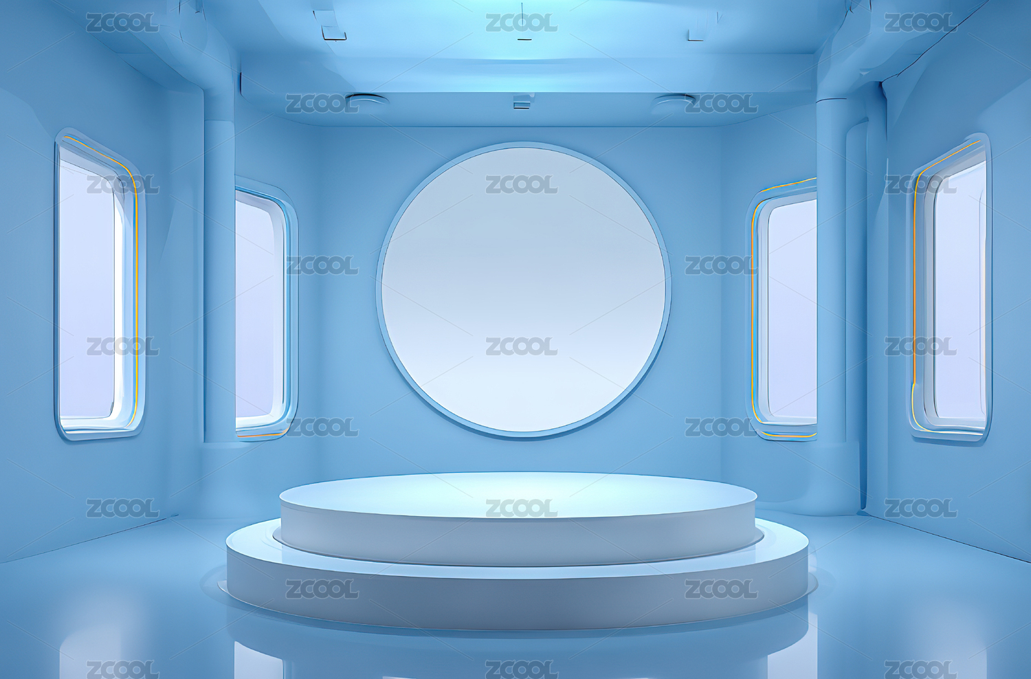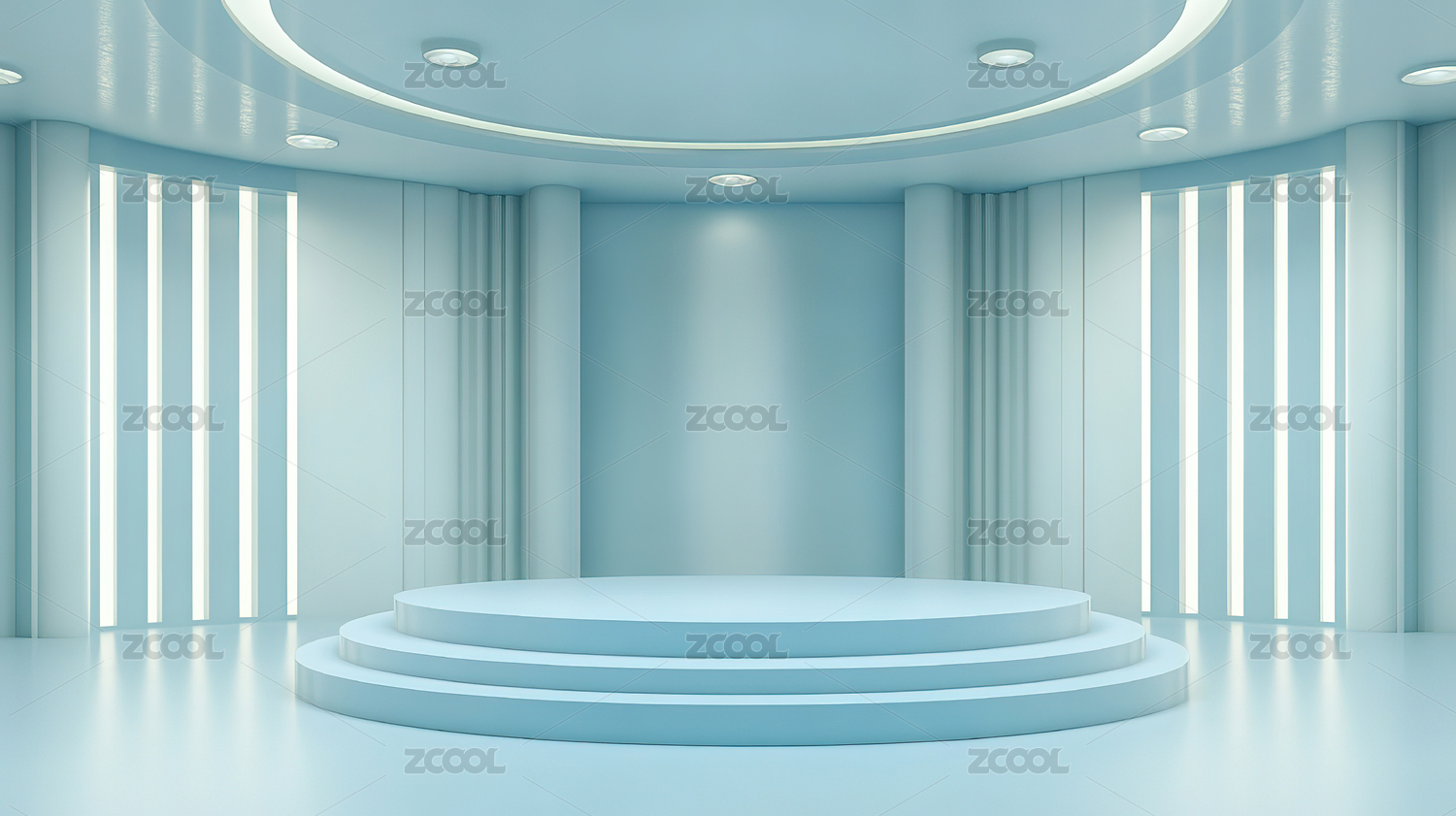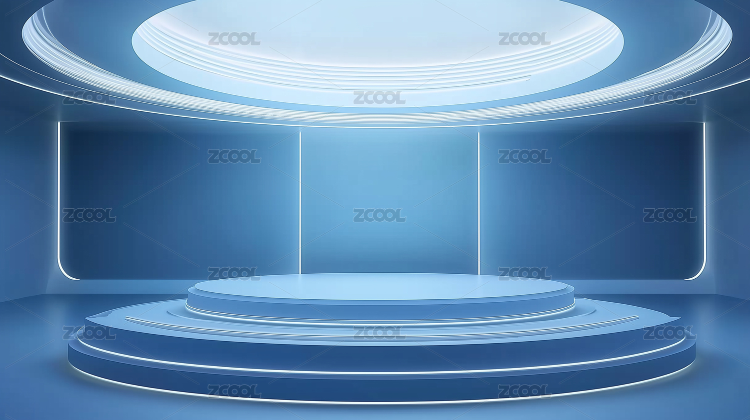 蓝色舞台,环形阶梯,灯光照射,炫酷背景