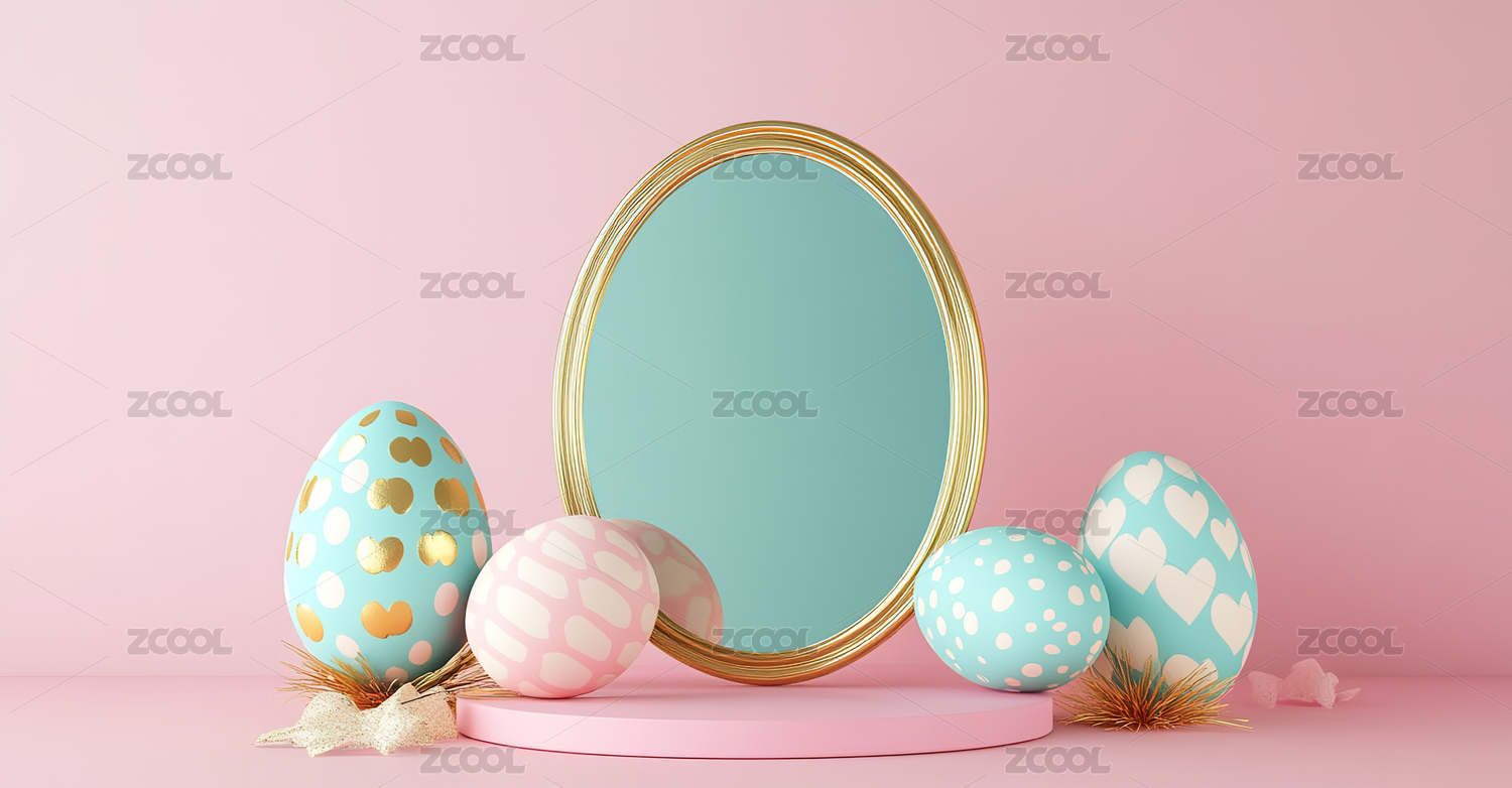 粉红色背景下的复活节彩蛋和礼物特写镜头