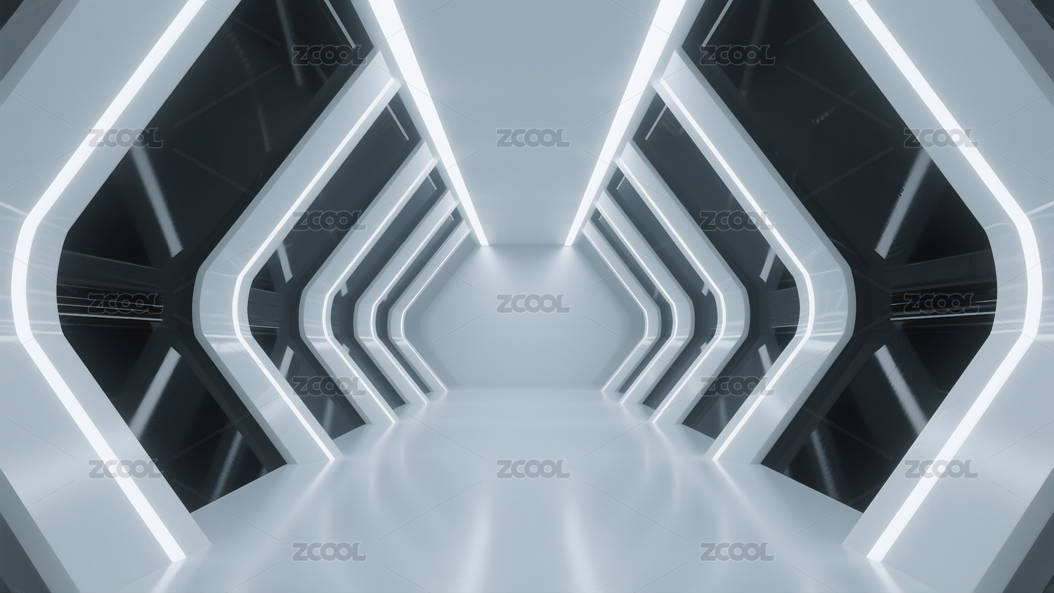 未来科幻蓝白走廊灯