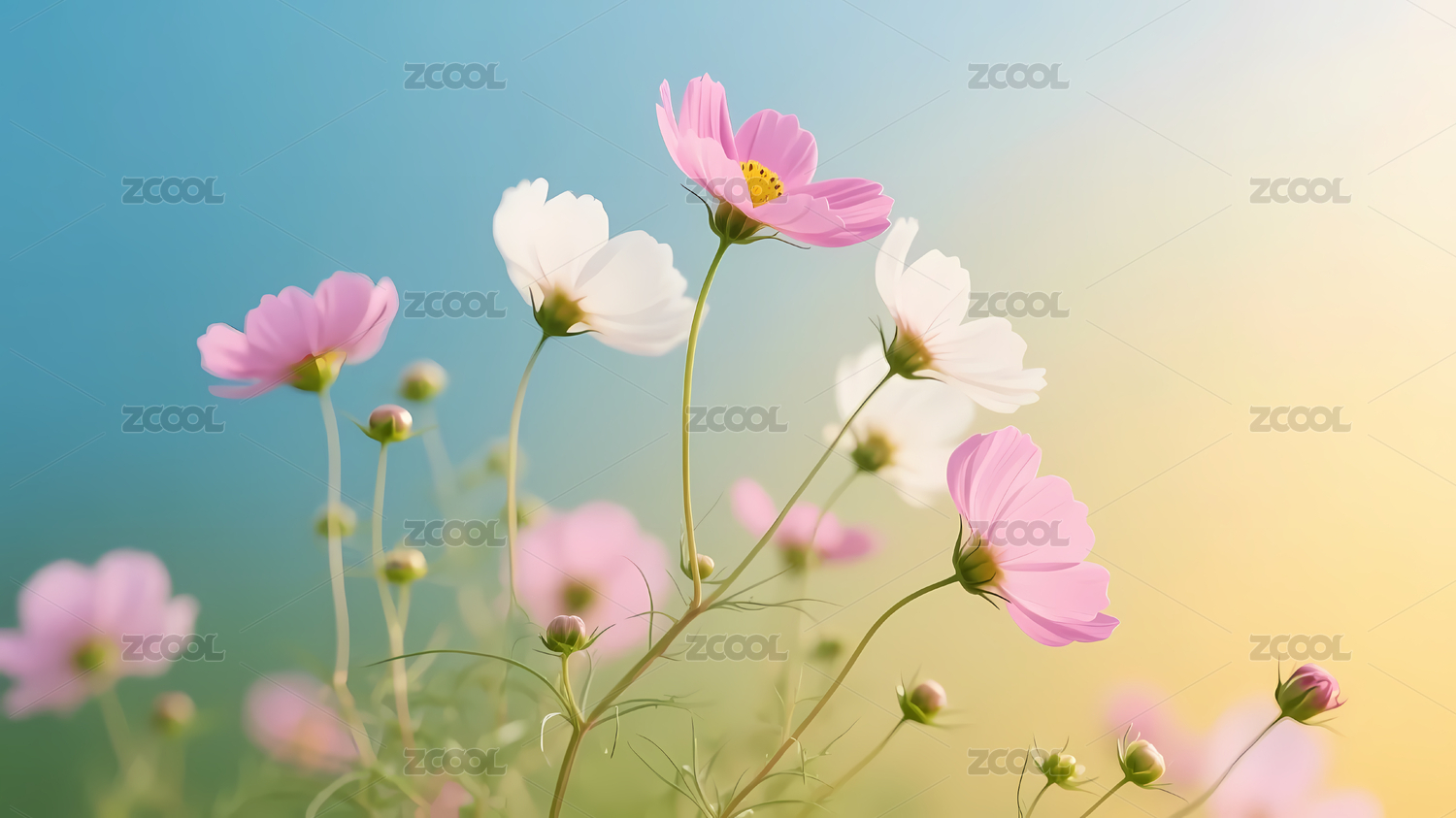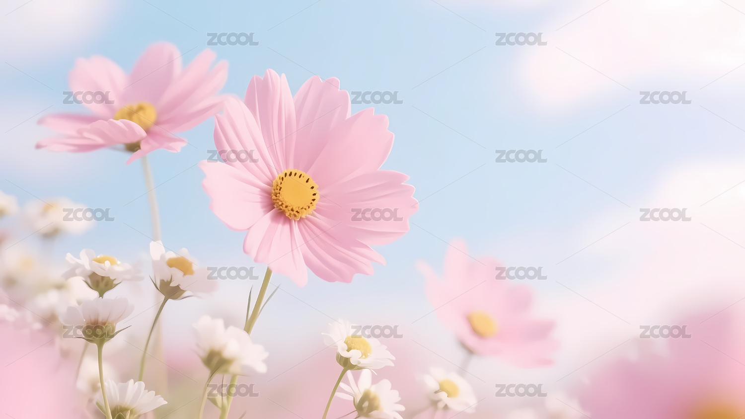 蓝天,白云,自然,花朵,背景,植物,明亮,柔和,粉紫色,盛开