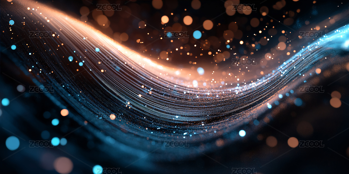 流动光带与闪烁粒子的抽象背景